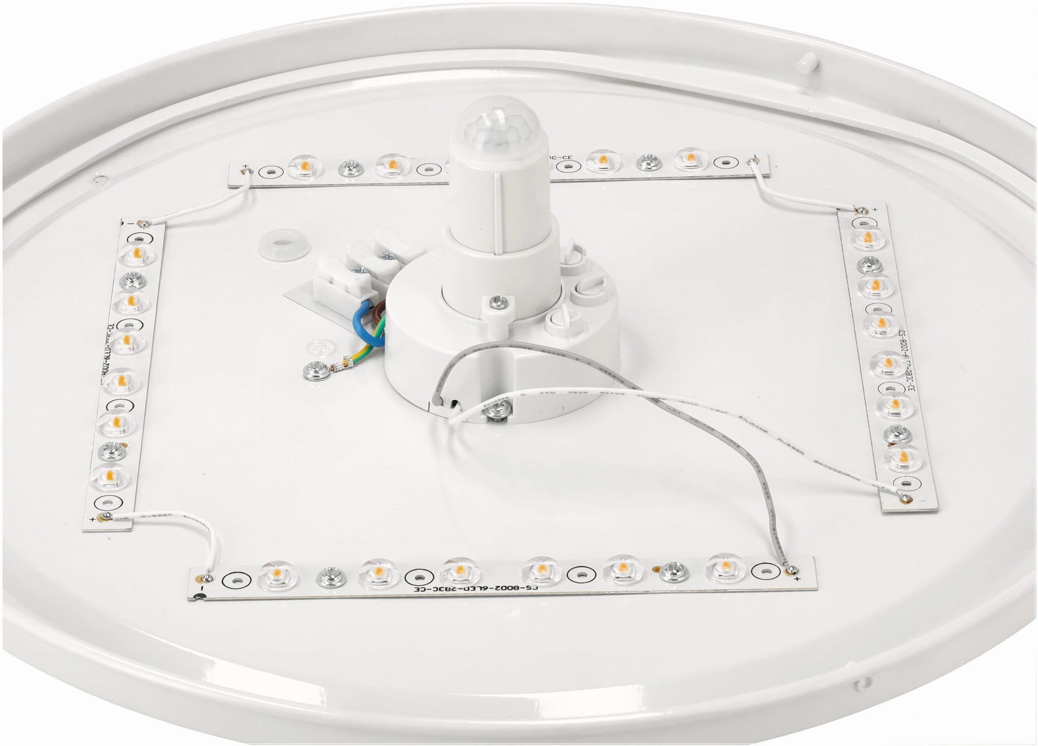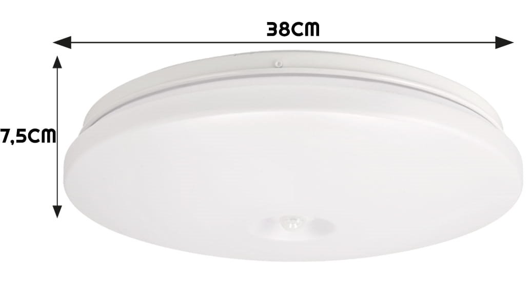 Plafoniera LED 24W została wyposażona w czujnik ruchu i zmierzchu PIR, ktory całkowicie automatyzuje jej pracę. Zasięg działania czujnika ruchu w zależności od ustawień wynosi od 1 do 6 metrów, a lampa może działać niezależnie od ustawień trybu dzień/noc dzięki regulowanemu sensorowi zmierzchu (od 15 do 2000 lux).