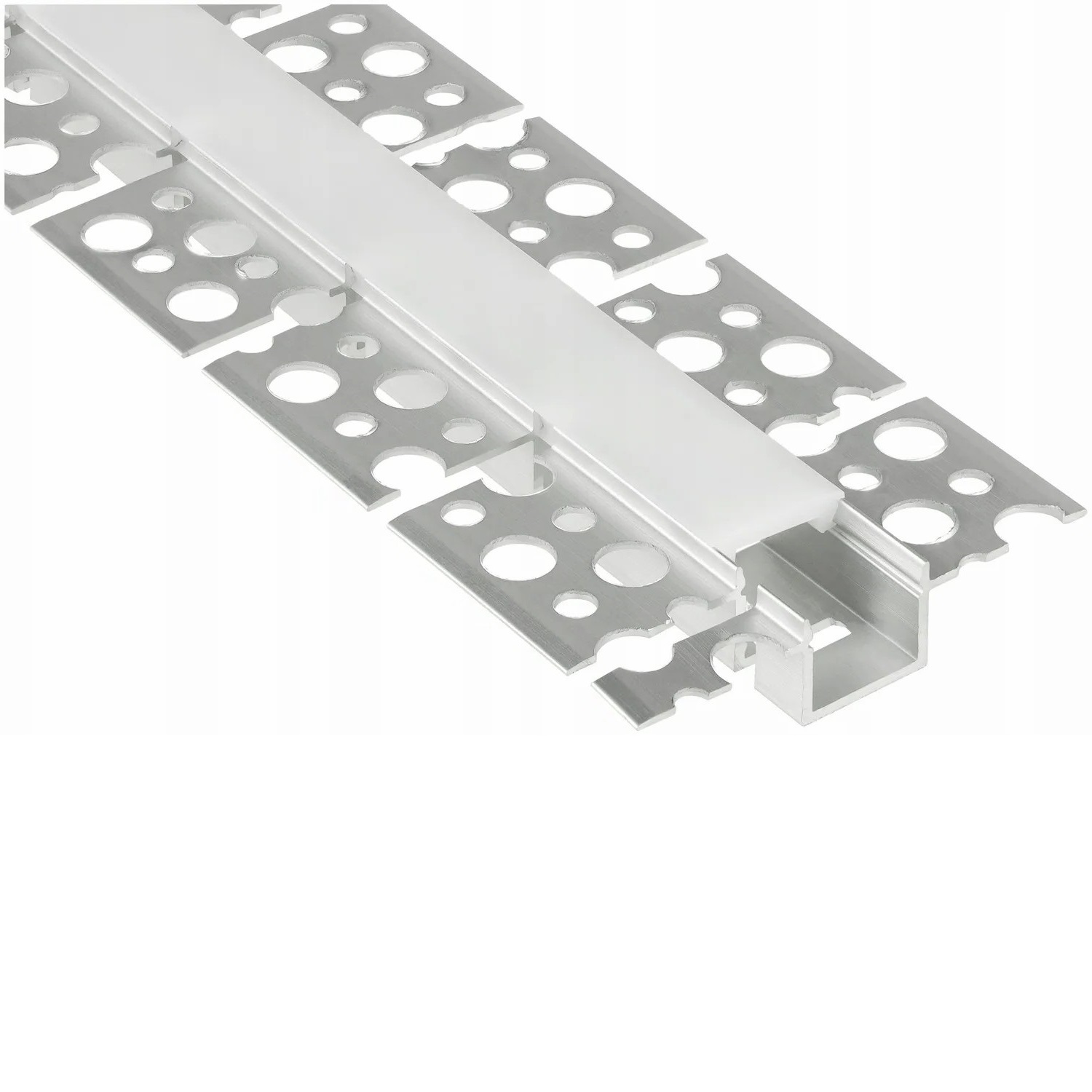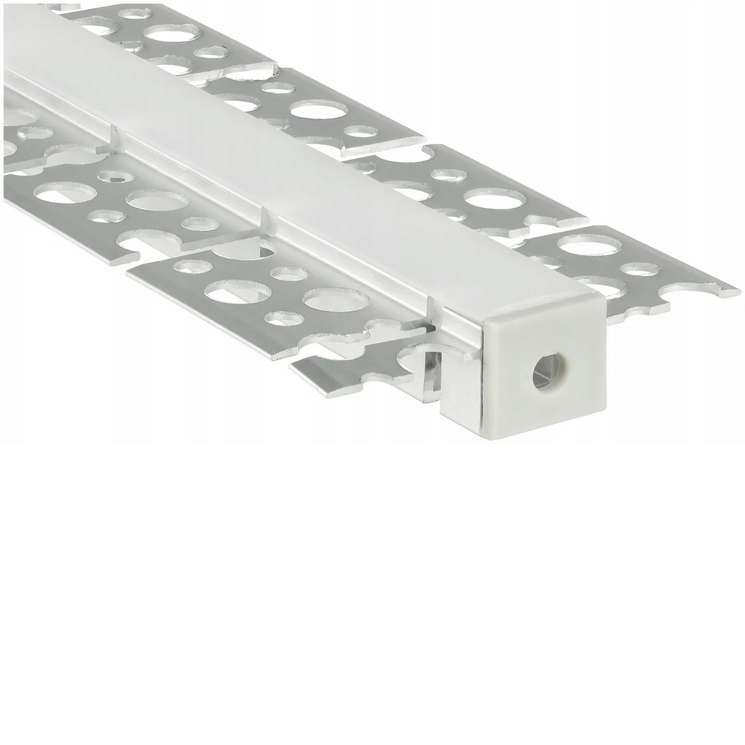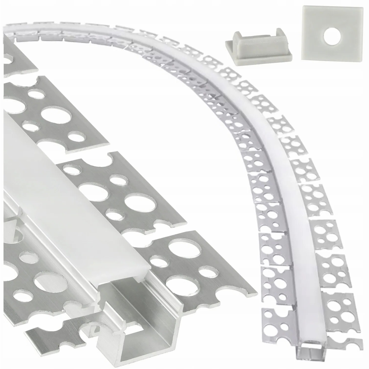 Profil LED elastyczny FLEX przeznaczony jest do montażu w sufitach karton-gips, co pozwala na jego pełną integrację z powierzchnią. W zestawie znajduje się nie tylko sam profil, ale również mleczny klosz oraz zaślepki, co dodatkowo ułatwia proces montażu i gwarantuje estetyczne wykończenie.
