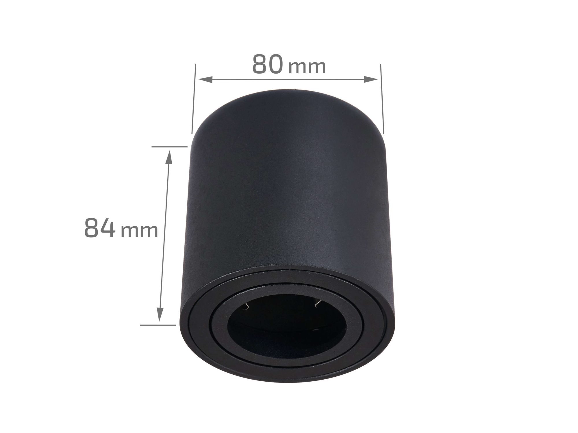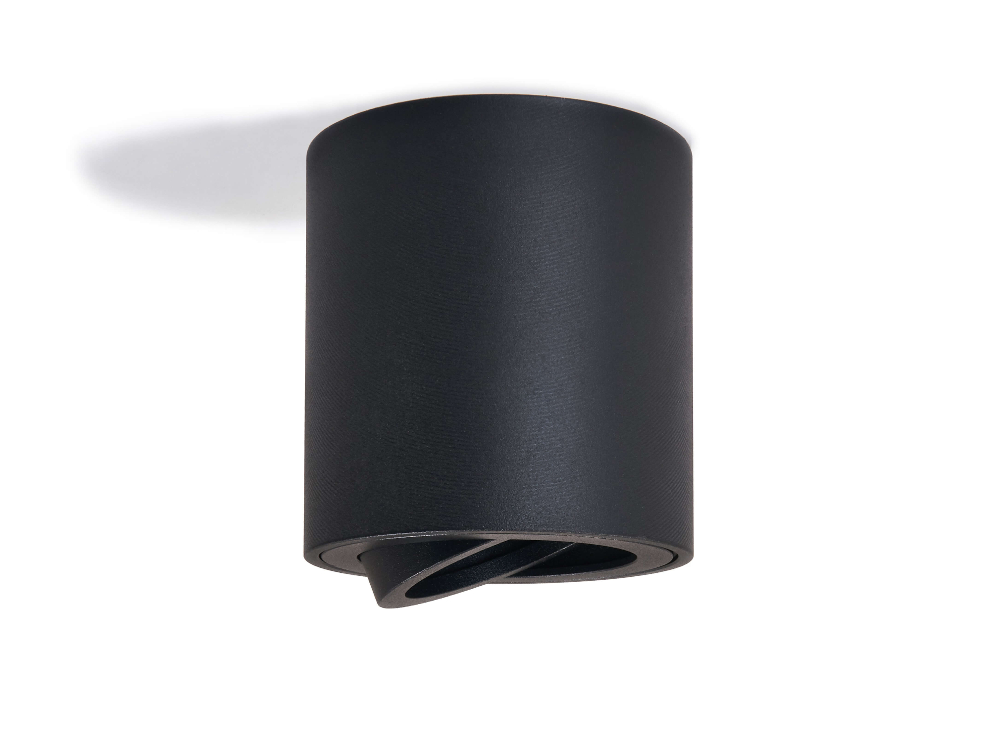 Czarny halogen natynkowy 1xGU10 okrągły z możliwością montażu na każdej płaskiej powierzchni sufitu. Elegancki spot sufitowy, wykonany z aluminium. Możliwość regulacji kierunku świecenia