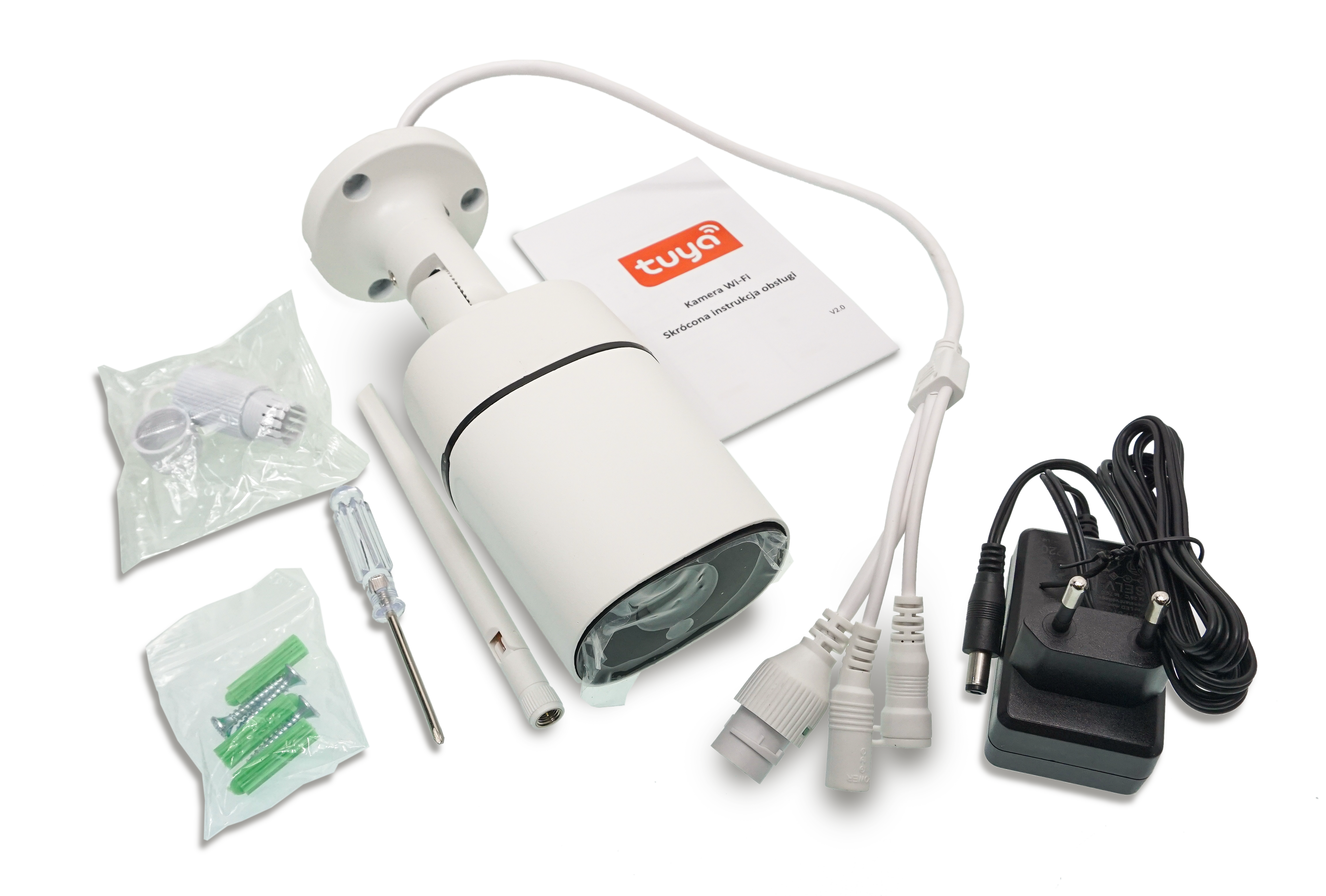 Bezprzewodowa kamera zewnętrza SMART Wi-Fi z możliwością zapisu danych na karcie lub w chmurze TUYA. Zewnętrzna kamera, którą podłączamy bezpośrednio do prądu 230V (Zasilanie: 5V, 1,5A – zasilacz i kabel USB w zestawie), a sterować możemy za pomocą uniwersalnej aplikacji TUYA SMART. Kamera zewnętrzna SMART nagrywa w rozdzielczości 1080P, a jej pobór mocy nie przewyższa 12W. Współpracuje ze wszystkim urządzeniami mobilnymi z Android 4.4, iOS 8.0 (lub nowsze). Kamera ma wbudowany mikrofon i głośnik. Można słyszeć co się dzieje w pobliżu kamery oraz prowadzić rozmowę z osobami znajdującymi się w pobliżu kamery. Warto podkreślić również wbudowaną detekcję ruchu, która w momencie wykrycia ruchu wyświetli powiadomienie na Twoim telefonie.