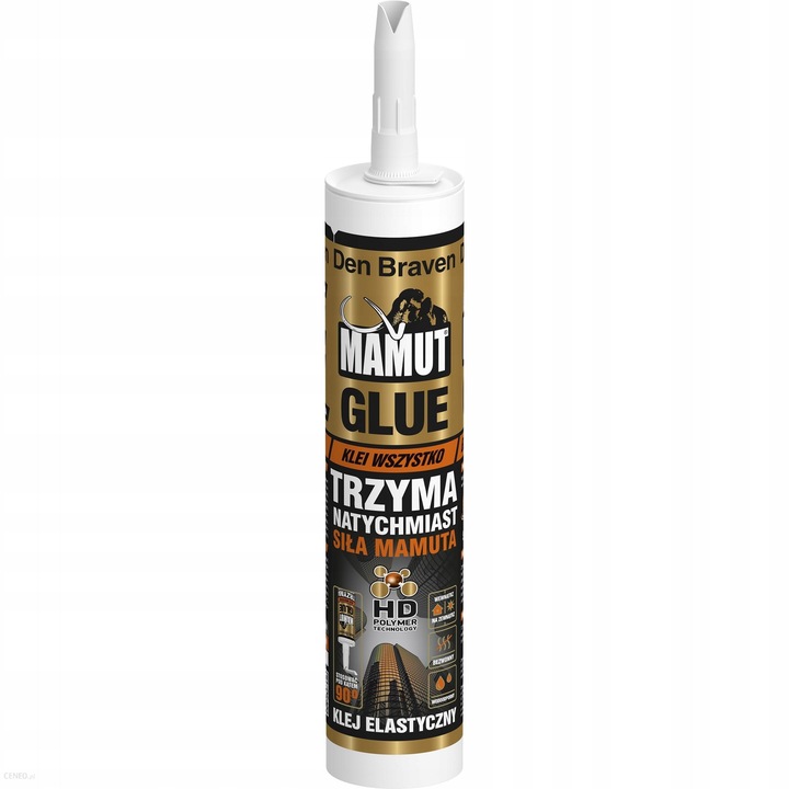 Klej Mamut to niezwykle elastyczny klej montażowy o maksymalnej wytrzymałości na zerwanie, który wytrzymuje obciążenie do 22 kg/cm2. Jest odporny na spływanie, powstawanie pęcherzy, rys skurczowych i pęknięć, a także wyróżnia się wysoką odpornością fizyczną i mechaniczną. Jest to klej montażowy neutralny chemicznie, który nie uszkadza warstwy luster i nie odbarwia kamienia neutralnego. Dzięki swojej trwałej elastyczności amortyzuje drgania i wibracje podłoża oraz mocowanych elementów. Warto też wspomnieć o jego szybkim schnięciu, zapewniającym natychmiastową przyczepność, przez co nie wymaga podpierania klejonych elementów. Doskonale sprawdza się w każdych warunkach w temperaturze od –40°C do +90°C.