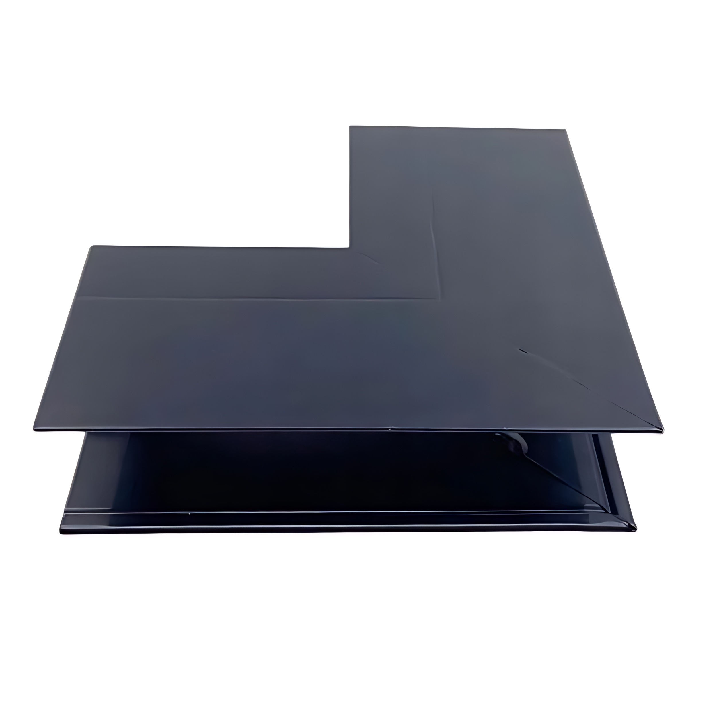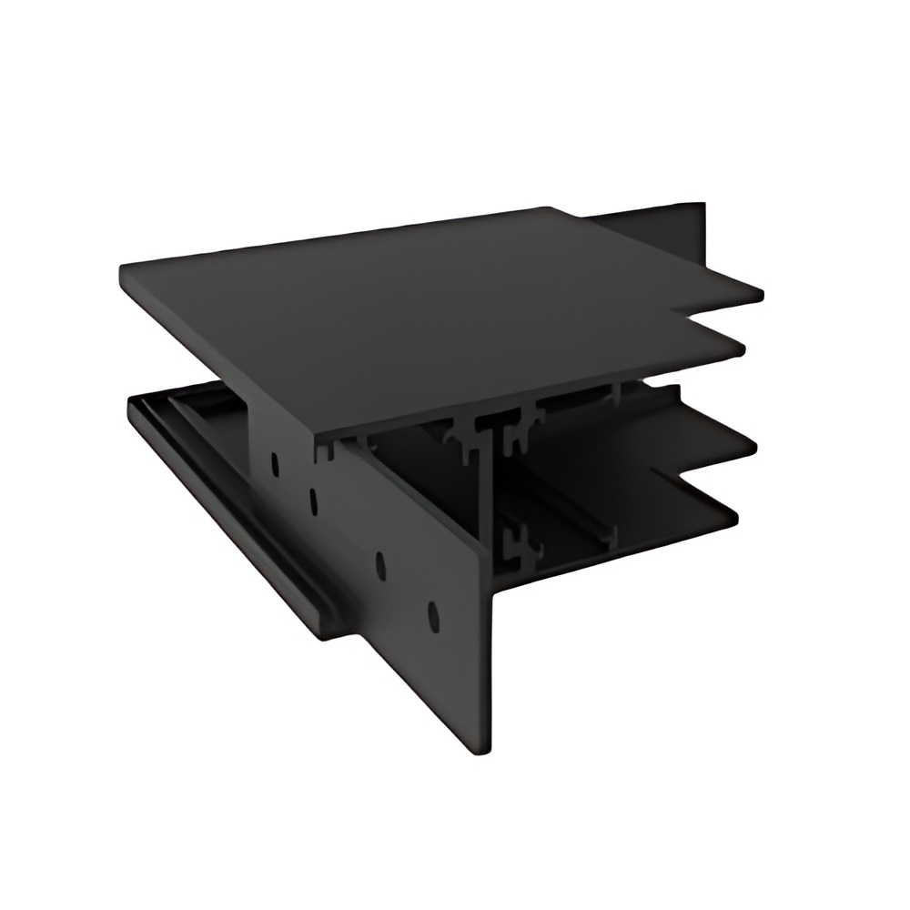 Złącze narożna natynkowa do szyny magnetycznej podtynkowej służące do łączenia szynoprzewodów SUFIT-ŚCIANA. Przeznaczone do połączenia dwóch szyn magnetycznych natynkowych pod kątem 90 stopni na suficie i ścianie.