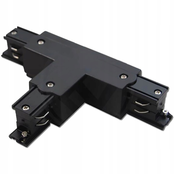 Czarny łącznik typ T przeznaczony do szynoprzewodów trójfazowych z serii Premium. Złącze wykonane z materiału ABS z miedzianymi przewodnikami, montowane na wcisk. Pozwala na połączenie trzech oddzielnych szyn. Zapewnia łączność mechaniczną, jak i przenosi zasilanie 230V.