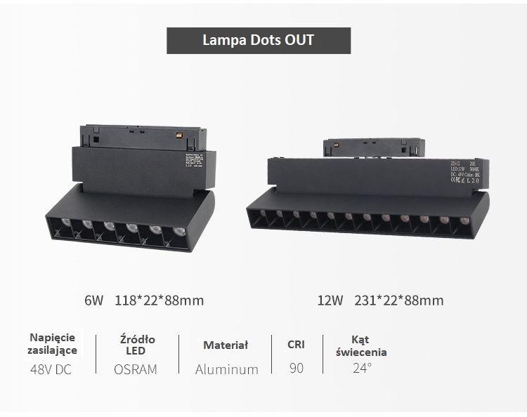 Magnetic Track Dots OUT to oświetlenie, które stanowi nie tylko ładny detal, ale również jest w stanie stworzyć istotny element tworzący wyjątkową atmosferę naszego pomieszczenia. Odpowiednio dobrane światło buduje nastrój oraz podkreśla walory naszych wnętrz. Lampa szynowa magnetyczna to nowość na rynku oświetleniowym, która wyróżnia się wyjątkowym designem, oraz nieograniczonymi możliwościami budowania oświetlenia. Reflektor magnetyczny montujemy na wcisk do szyny magnetycznej. Zasilany niskim napięciem 48V jest całkowicie bezpieczny podczas użytkowania i pozwoli nam w każdej chwili zmienić miejsce jego montażu (na długości całej szyny). Szynoprzewody oświetleniowe z mocowaniem lampy na magnes to kapitalny pomysł na stworzenie oryginalnej aranżacji świetlnej w każdym wnętrzu.