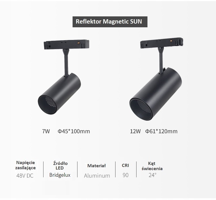 Reflektor Magnetyczny SUN to oświetlenie, które stanowi nie tylko ładny detal, ale również jest w stanie stworzyć istotny element tworzący wyjątkową atmosferę naszego pomieszczenia. Odpowiednio dobrane światło buduje nastrój oraz podkreśla walory naszych wnętrz. Lampa szynowa magnetyczna to nowość na rynku oświetleniowym, która wyróżnia się wyjątkowym designem, oraz nieograniczonymi możliwościami budowania oświetlenia. Reflektor magnetyczny montujemy na wcisk do szyny magnetycznej. Zasilany niskim napięciem 48V jest całkowicie bezpieczny podczas użytkowania i pozwoli nam w każdej chwili zmienić miejsce jego montażu (na długości całej szyny). Szynoprzewody oświetleniowe z mocowaniem lampy na magnes to kapitalny pomysł na stworzenie oryginalnej aranżacji świetlnej w każdym wnętrzu.