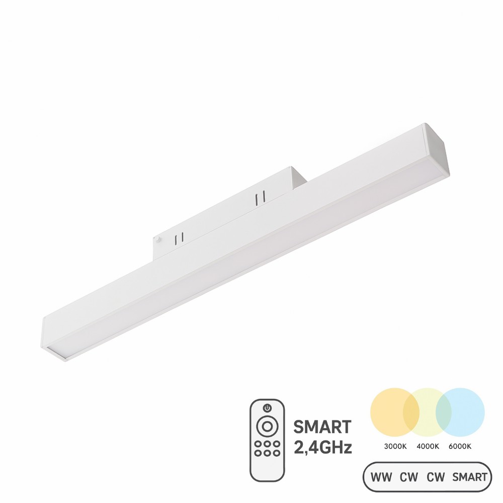 Lampa magnetyczna liniowa biała z serii CCT Switch o mocy 12W i długości 30 cm. Lampa z przełącznikiem na obudowie umożliwiającym zmianę barwy światła (3000K, 4000K, 6000K), a także możliwością sterowania za pomocą pilota radiowego 2,4 GHz.