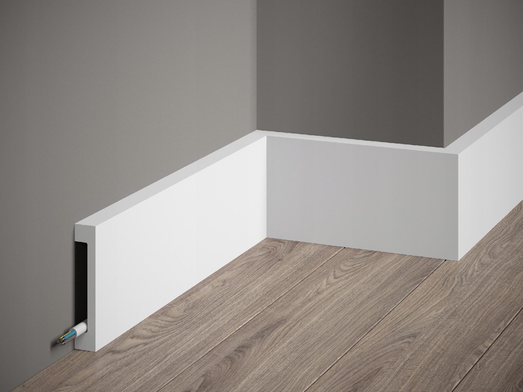 Listwa przypodłogowa LED Mardom Decor MD009 o długości 2 metrów wykonana z niezwykle trwałego i odpornego na uszkodzenia mechaniczne PolyForce. Biała, gładka powłoka przeznaczona do malowania.