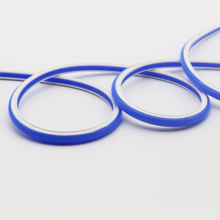 Niebieska osłonka silikonowa do taśm LED montowanych w powierzchniach frezowanych. Neon Frez umożliwia tworzenie w pełni jednolitych linii światła w różnym kształcie, przy wykorzystaniu standardowych pasków LED.