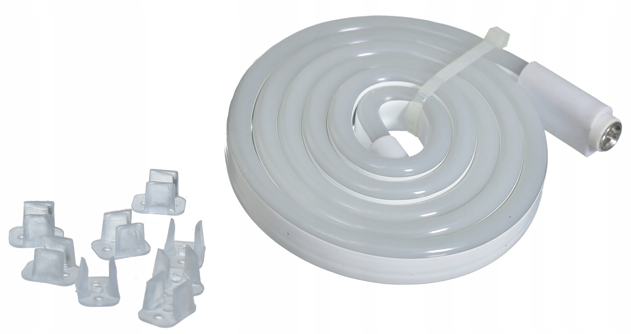 Neon LED DIY to nowość na rynku. Elastyczna taśma, dzięki której uzyskujemy jednolitą linię światła, z drutem wewnątrz, dzięki któremu neon po wygięciu pozostanie w wybranym przez nas kształcie do momentu ponownego wygięcia. Znakomicie sprawdzi się jako dekoracja w naszych domach, restauracjach czy pokojach dzięcięcych. W zestawie znajdują się:
