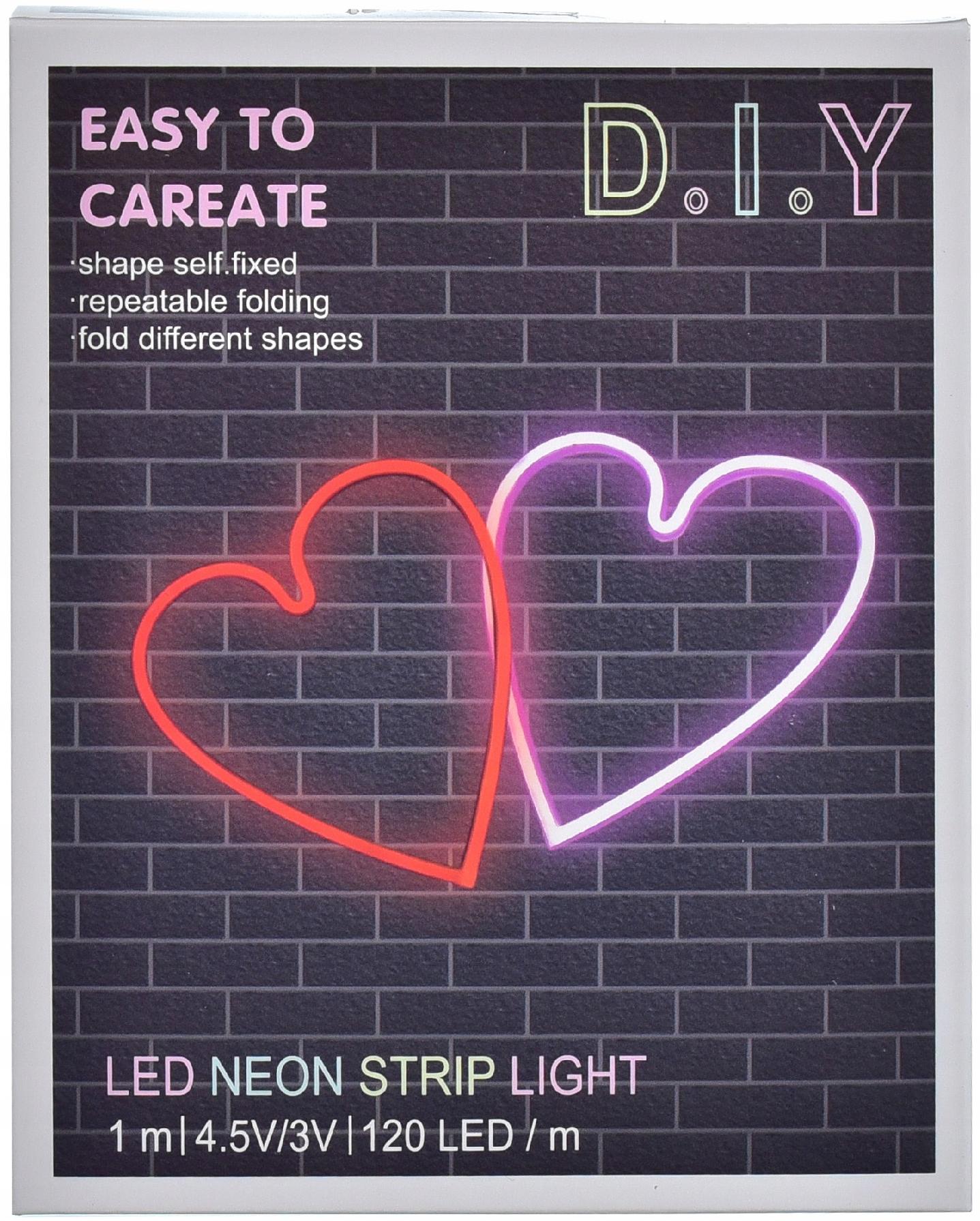 Neon LED DIY to nowość na rynku. Elastyczna taśma, dzięki której uzyskujemy jednolitą linię światła, z drutem wewnątrz, dzięki któremu neon po wygięciu pozostanie w wybranym przez nas kształcie do momentu ponownego wygięcia. Znakomicie sprawdzi się jako dekoracja w naszych domach, restauracjach czy pokojach dzięcięcych. W zestawie znajdują się: