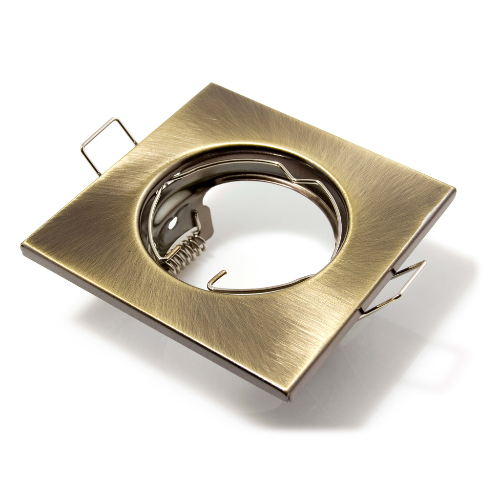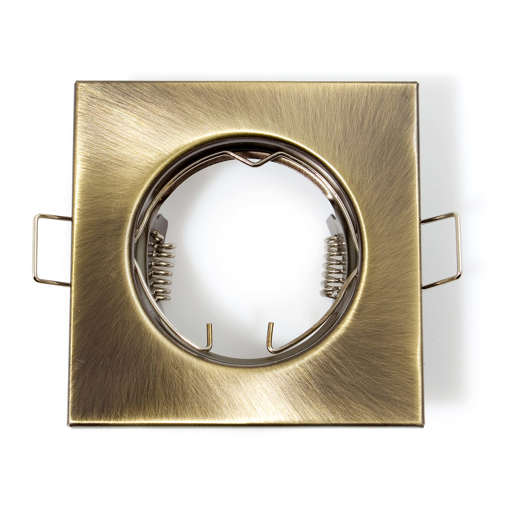 Oprawa halogenowa stała GU10/MR16 kwadratowa mosiądz wykonana z blachy, przeznaczona do montażu w sufitach podwieszanych. Oprawka sufitowa kwadratowa, w której zamocujemy żarówki o średnicy 50 mm z trzonkiem GU10 lub MR16.