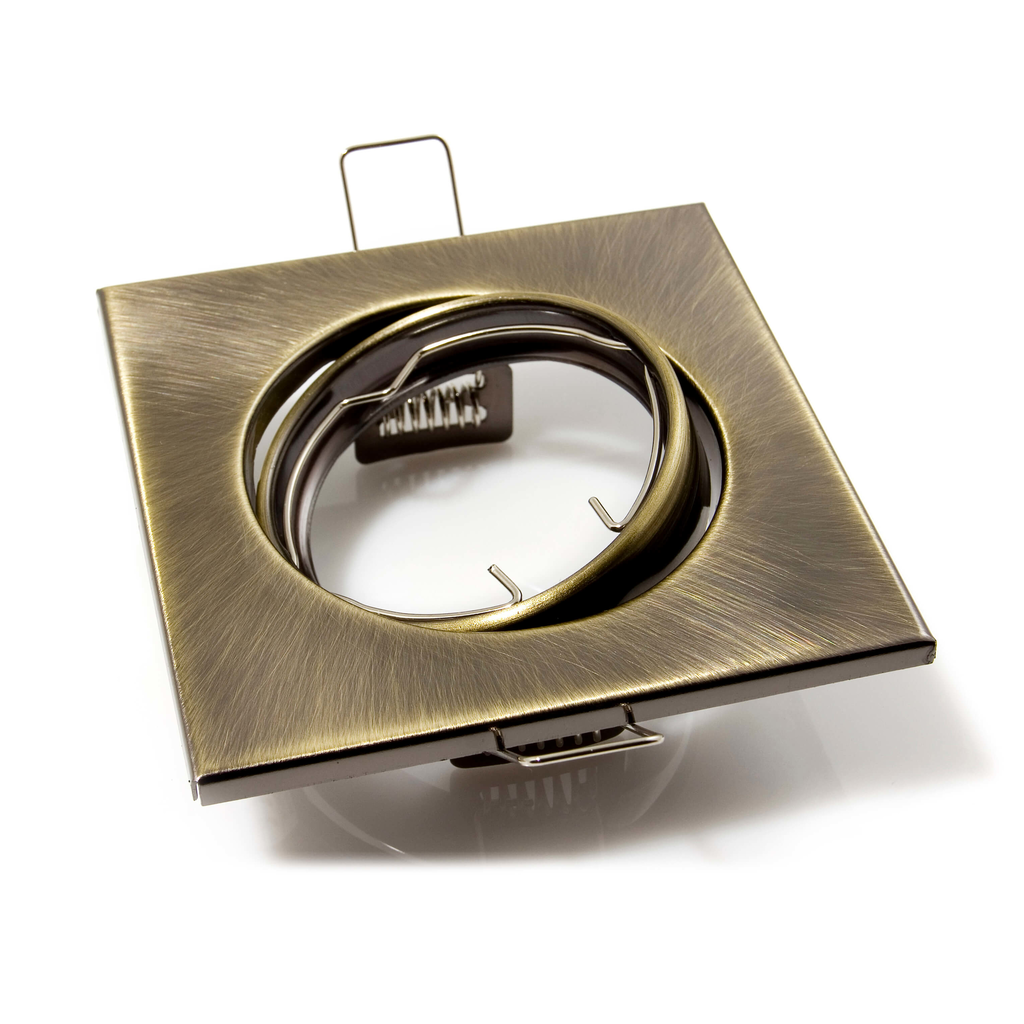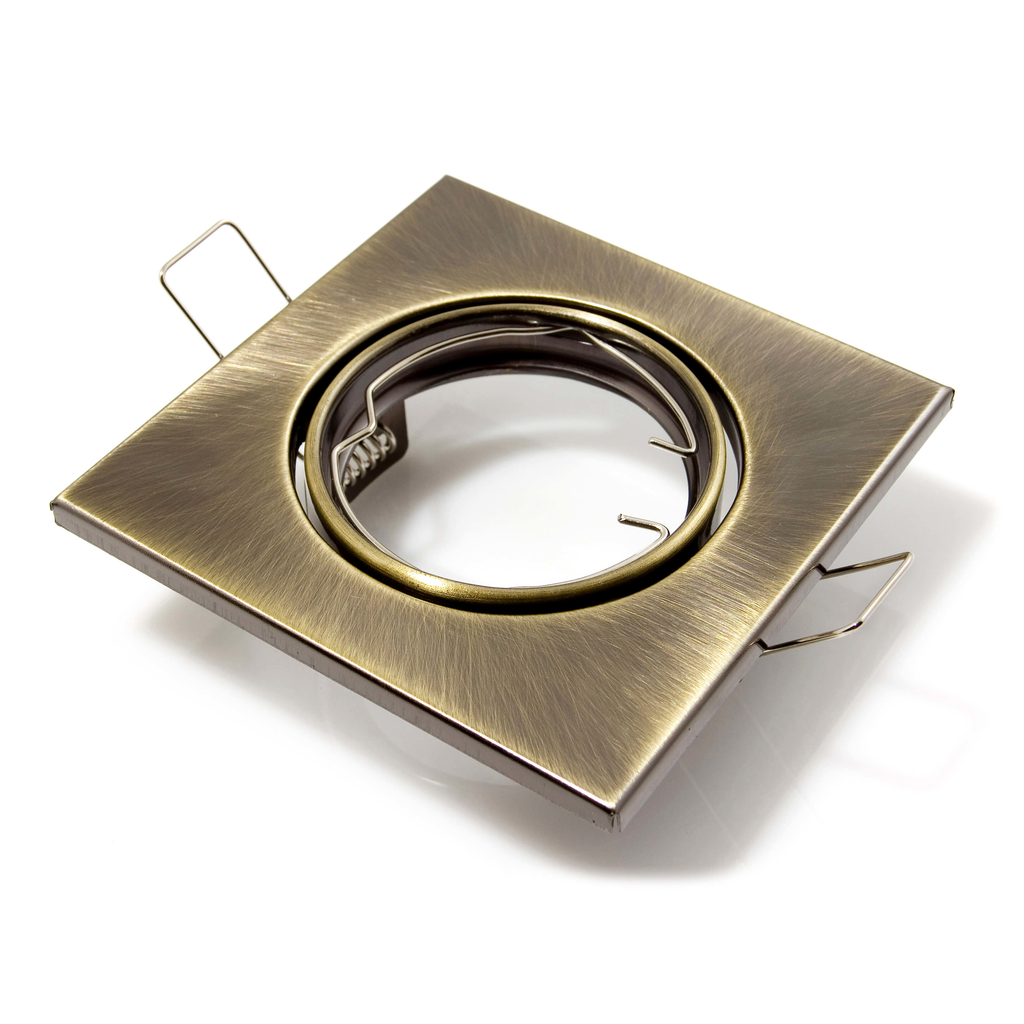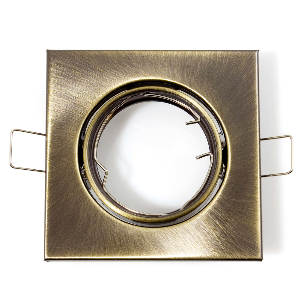 Oprawa halogenowa ruchoma GU10/MR16 kwadratowa mosiądz wykonana z blachy, przeznaczona do montażu w sufitach podwieszanych. Oprawka sufitowa z możliwością regulacji kierunku świecenia żarówki.