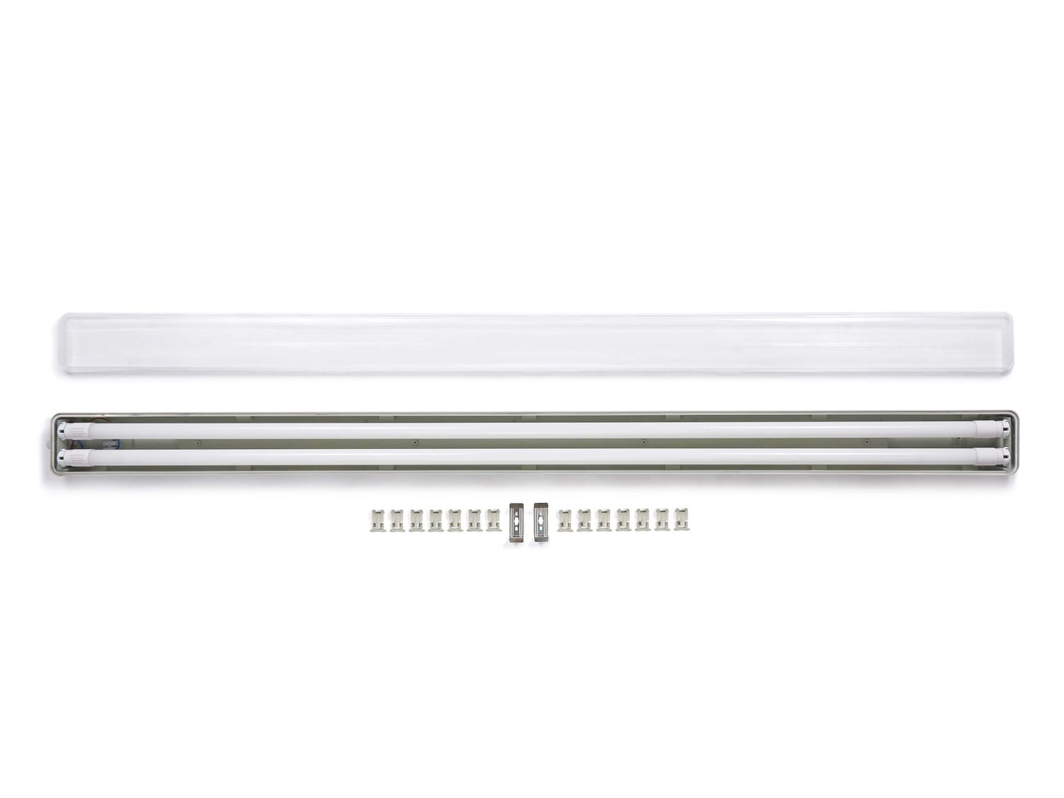 Głównym elementem naszego zestawu jest hermetyczna oprawa świetlówkowa wykonana z materiału ABS i wyposażona w przezroczysty klosz PS. Jest to lampa, która doskonale poradzi sobie w każdych warunkach, a dzięki wytrzymałej obudowie, będziemy mogli ją wykorzystać w garażach, warsztatach, jak i obiektach przemysłowych.