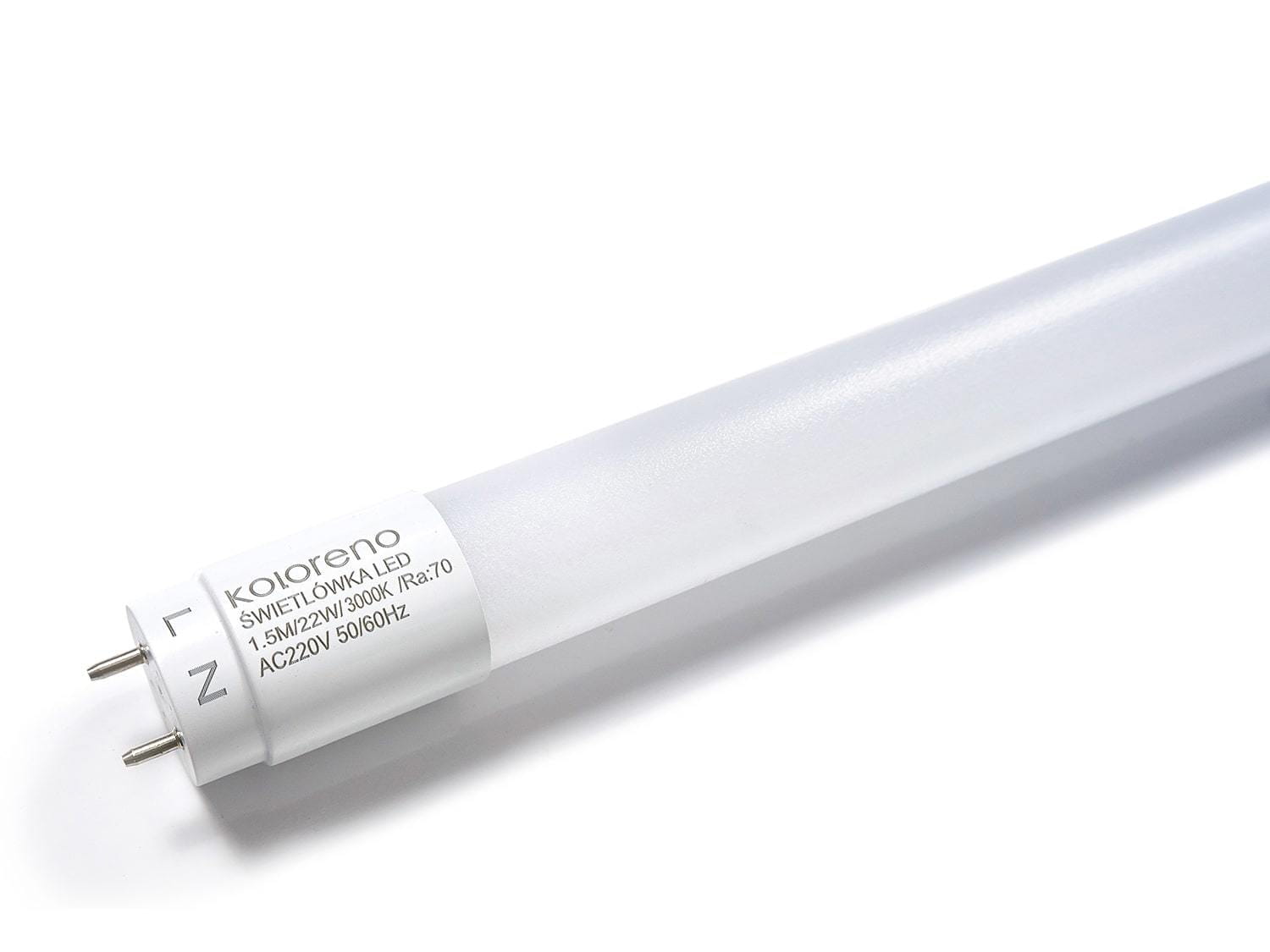 W zestawie razem z oprawą oferujemy Państwu wydajne i energooszczędne świetlówki LED T8 o mocy 22W. Emitują one białe ciepłe światło o strumieniu świetlnym 2100 lumenów każda. Są to energooszczędne zamienniki tradycyjnych świetlówek 52W, które wyróżniają się wysoką wydajnością i długą żywotnością.