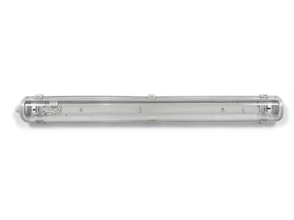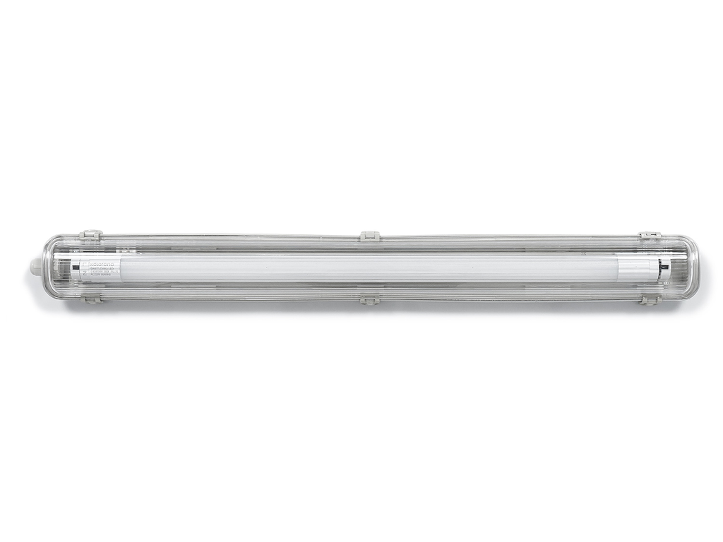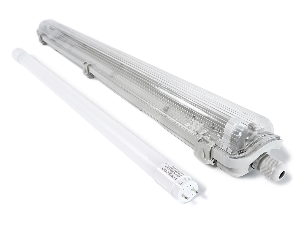 Oprawa hermetyczna IP65 1×60 cm w komplecie ze świetlówką LED o mocy 9W (800 lumenów) i białej neutralnej barwie światła. Komplet oświetleniowy o wszechstronnym zastosowaniu.