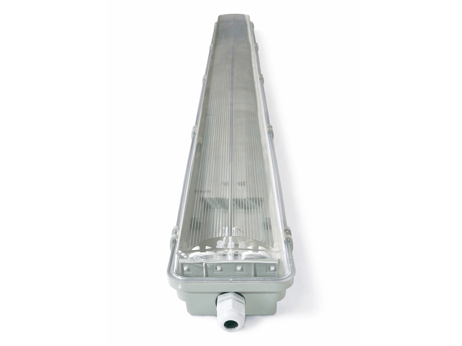 Oprawa hermetyczna 2×120 cm do świetlówek LED T8 zasilanych jednostronnie. Wodoodporna oprawa świetlówkowa o klasie szczelności IP65 z przezroczystym kloszem. Wykonana z wytrzymałego materiału ABS.