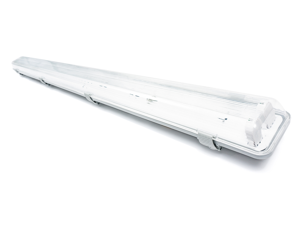 Hermetyczna oprawa świetlówkowa 2×120 cm o solidnej konstrukcji, wykonana z wytrzymałego tworzywa wysokiej jakości. Oprawa współpracująca ze świetlówkami LED zasilanymi jednostronnie (brak stateczników i starterów). Podłączamy ją bezpośrednio do instalacji 230V, a sama lampa charakteryzuje się wysoką klasą szczelności IP65, dzięki czemu poradzi sobie w każdych warunkach, nawet przemysłowych. Oprawy hermetyczne świetlówkowe najczęściej spotykamy w warsztatach, garażach oraz różnych obiektach przemysłowych. Są całkowicie odporne na działanie szkodliwych warunków zewnętrznych i wodoodporne. Oferowana oprawa została wyposażona w gniazda G13 przeznaczone do podłączenia świetlówek T8.