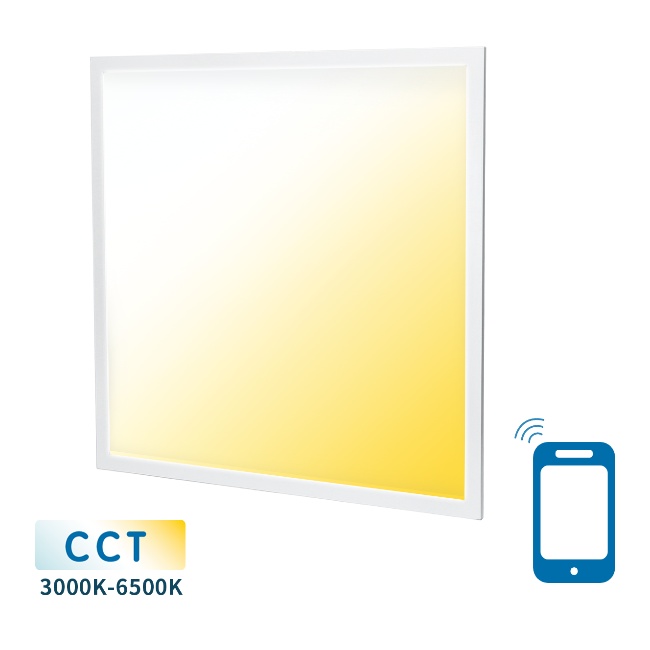 Panel LED 60×60 SMART mocy 32W z możliwością sterowania Wi-Fi poprzez aplikację na smartfonie lub tablecie. Panel LED 60×60 z możliwością ściemniania i zmiany barwy bieli.