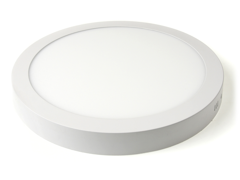 Panel LED 24W okrągły przeznaczony do montażu natynkowego. Panel LED w barwie białej neutralnej. Wersja Slim, wyposażona w mleczny klosz, z szerokim kątem świecenia 120 stopni.