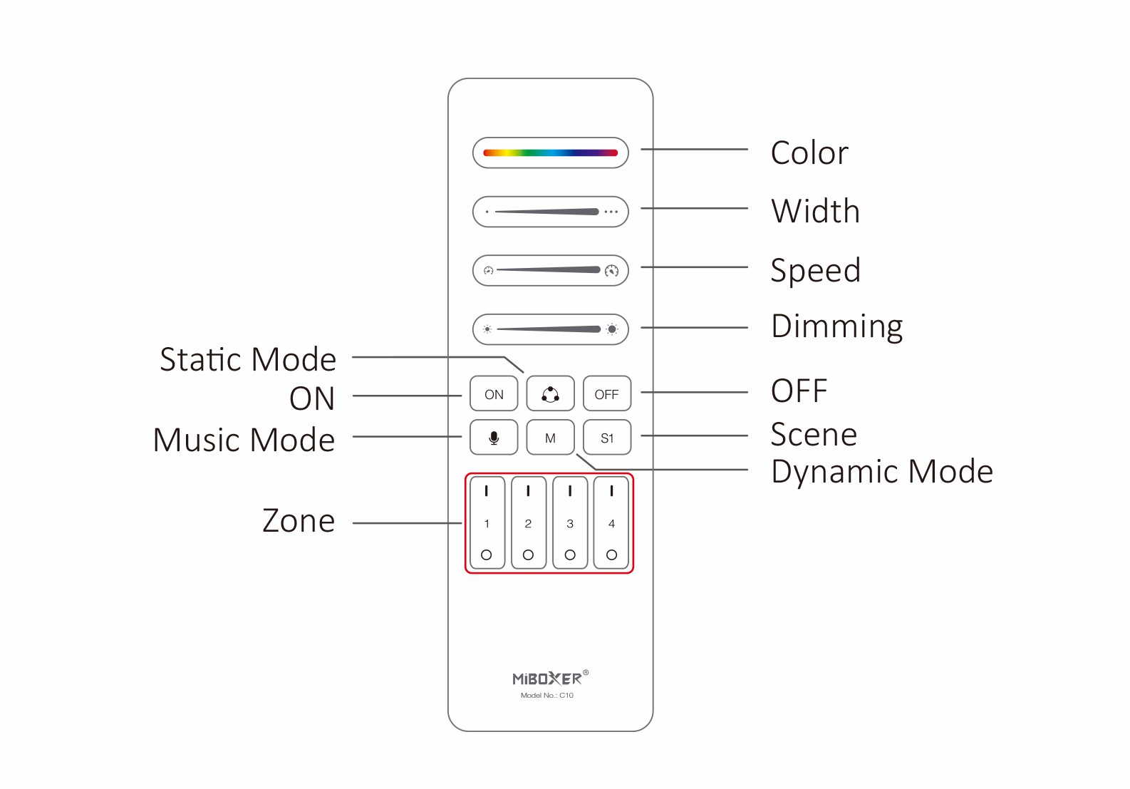 Pilot Mi-Light C10W do obsługi oświetlenia cyfrowego, oraz sterowników SPIW5-4. Bezprzewodowa komunikacja radiowa, oraz możliwość sterowania oświetleniem Digital i obsługi 4 stref – 4-kanały na jednym sterowniku.