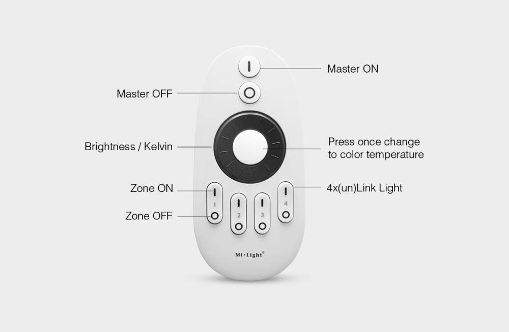 Pilot FUT006 służy do wygodnej obsługi instalacji oświetleniowych LED opartych na systemie Mi-Light/MiBoxer. Umożliwia sterowanie urządzeniami i źródłami światła Mono oraz CCT. Za pomocą pilota można włączać i wyłączać światło, płynnie regulować jego jasność, a w przypadku oświetlenia CCT także zmieniać temperaturę barwową od ciepłej do zimnej. Dzięki intuicyjnemu układowi przycisków oraz funkcji obrotowej regulacji pilot pozwala szybko dopasować parametry światła do aktualnych potrzeb użytkownika.