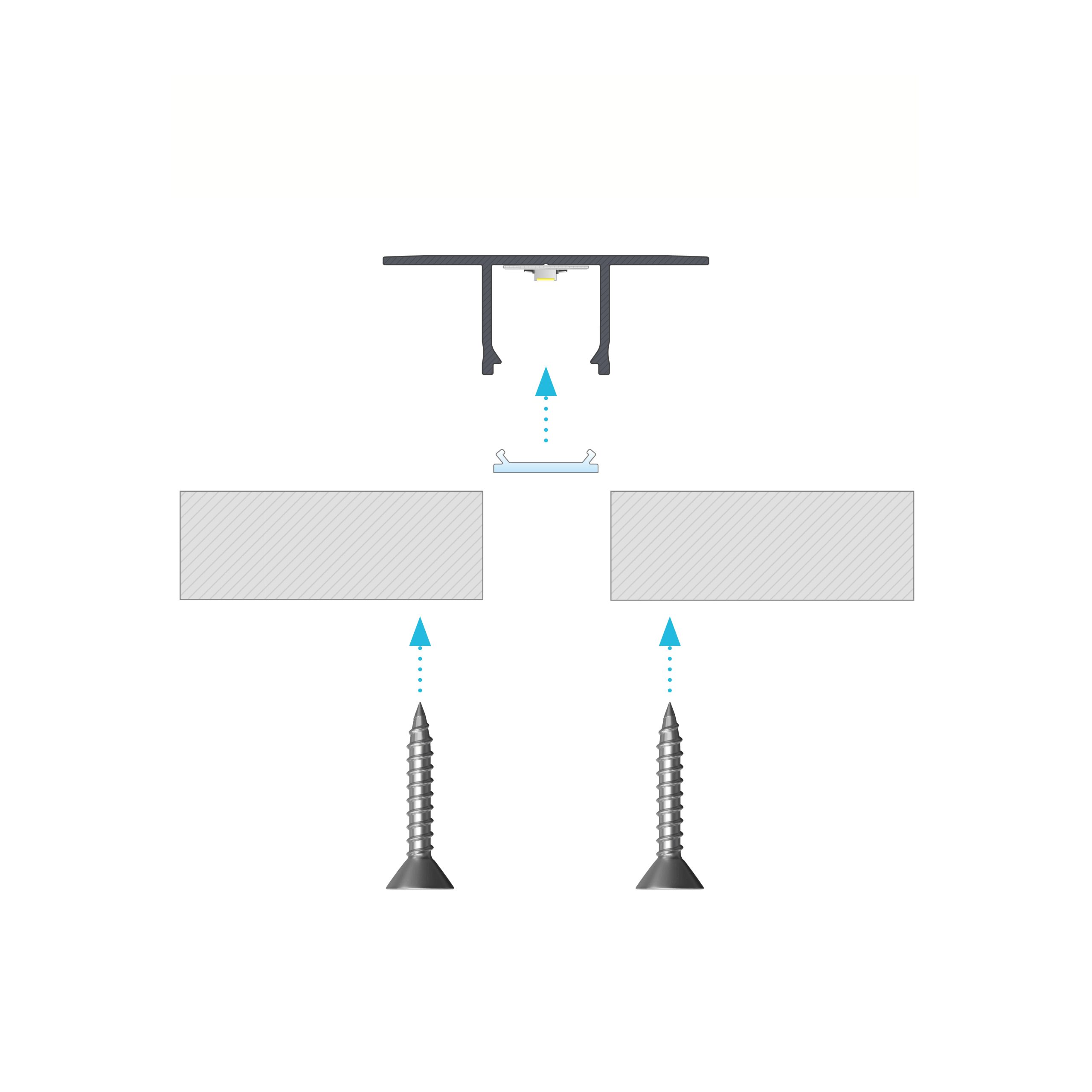 Pojedynczy profil LED do instalacji między dwoma płytami GK. Pozwala na szybki montaż przy zastosowaniu wkrętów oraz wykończenie gładzią szpachlową bez konieczności użycia siatki montażowej.