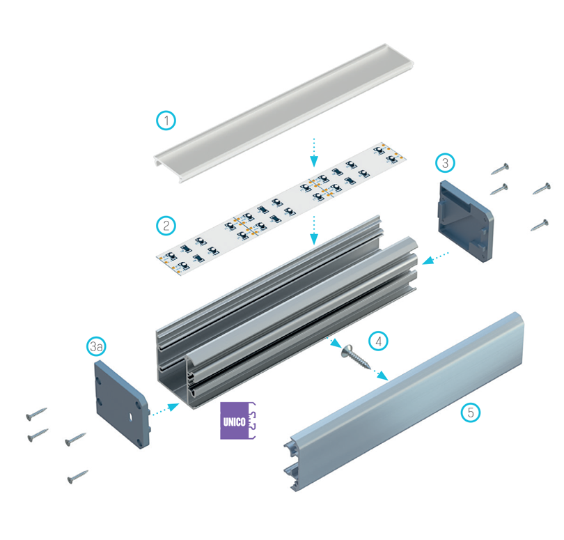 Instrukcja montażu profilu UNICO z kloszem DOUBLE z wykorzystaniem wkrętu montażowego oraz profilu montażowego TALIA M1.
