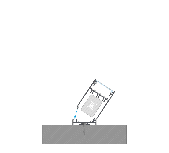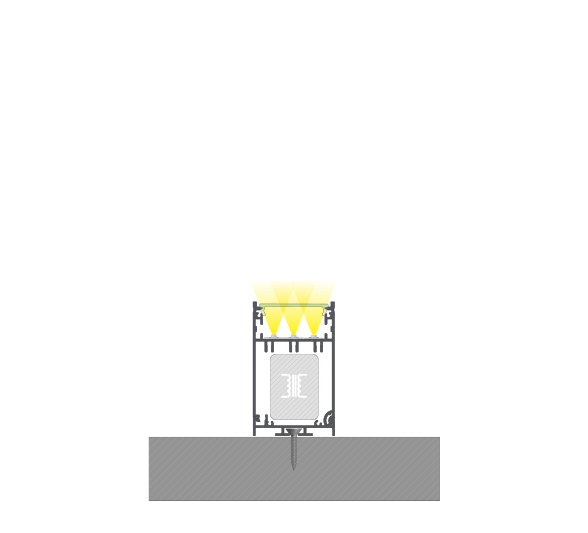 Efekt końcowy montażu profilu FOLDO z ukrytym zasilaczem z wykorzystaniem wkrętu montażowego oraz profilu montażowego FOLDO M1