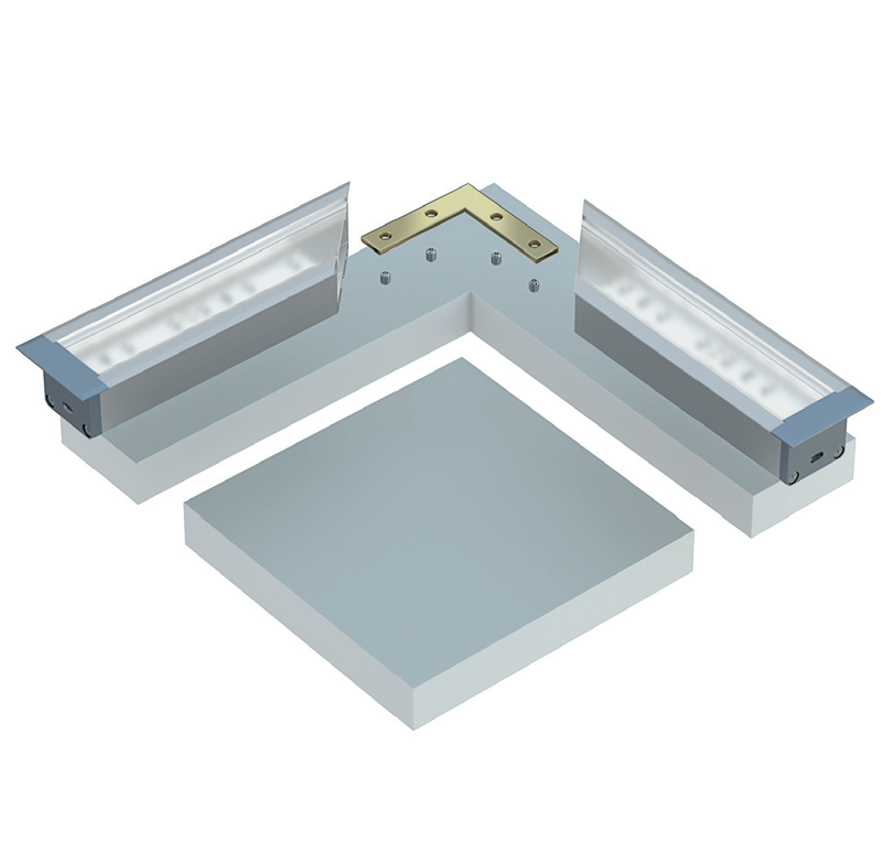 Efekt końcowy montażu profili inDILEDA za pomocą łącznika kątowego z wykorzystaniem sprężyn montażowych.