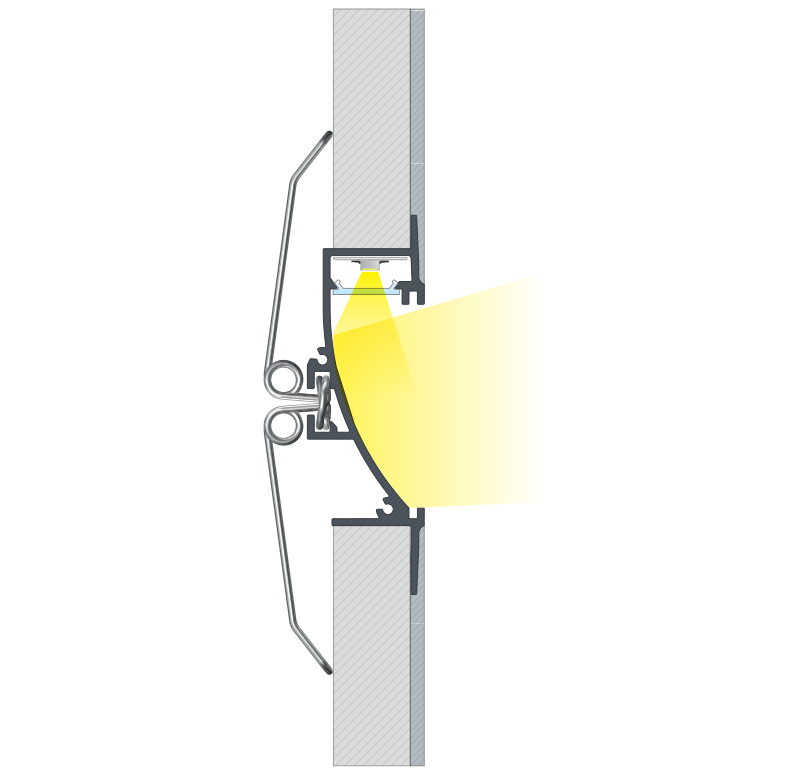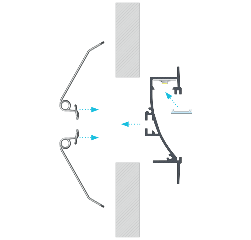 Instrukcja montażu profilu przypodłogowego TIANO z kloszem BASIC za pomocą sprężyn montażowych.