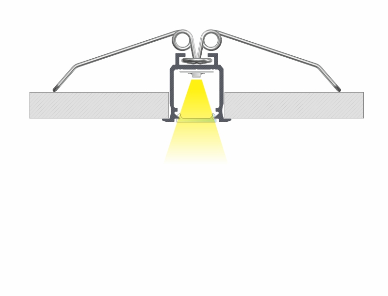 Profil typ W LUMINES, wpuszczany. Do montażu w lekkich konstrukcjach z zastosowaniem sprężyn montażowych