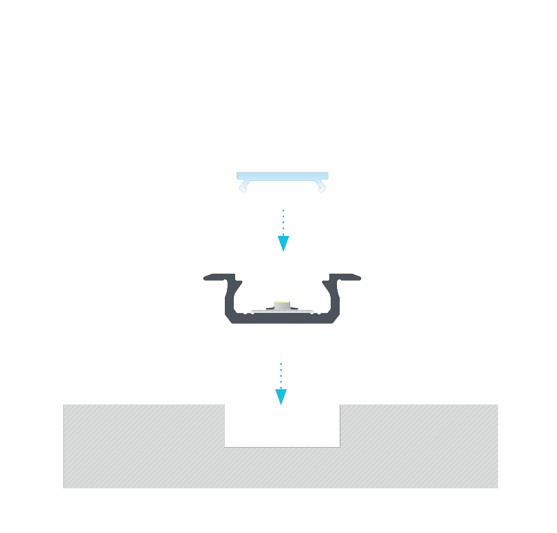 Efekt końcowy montażu profilu Z wpuszczanego z kloszem BASIC
