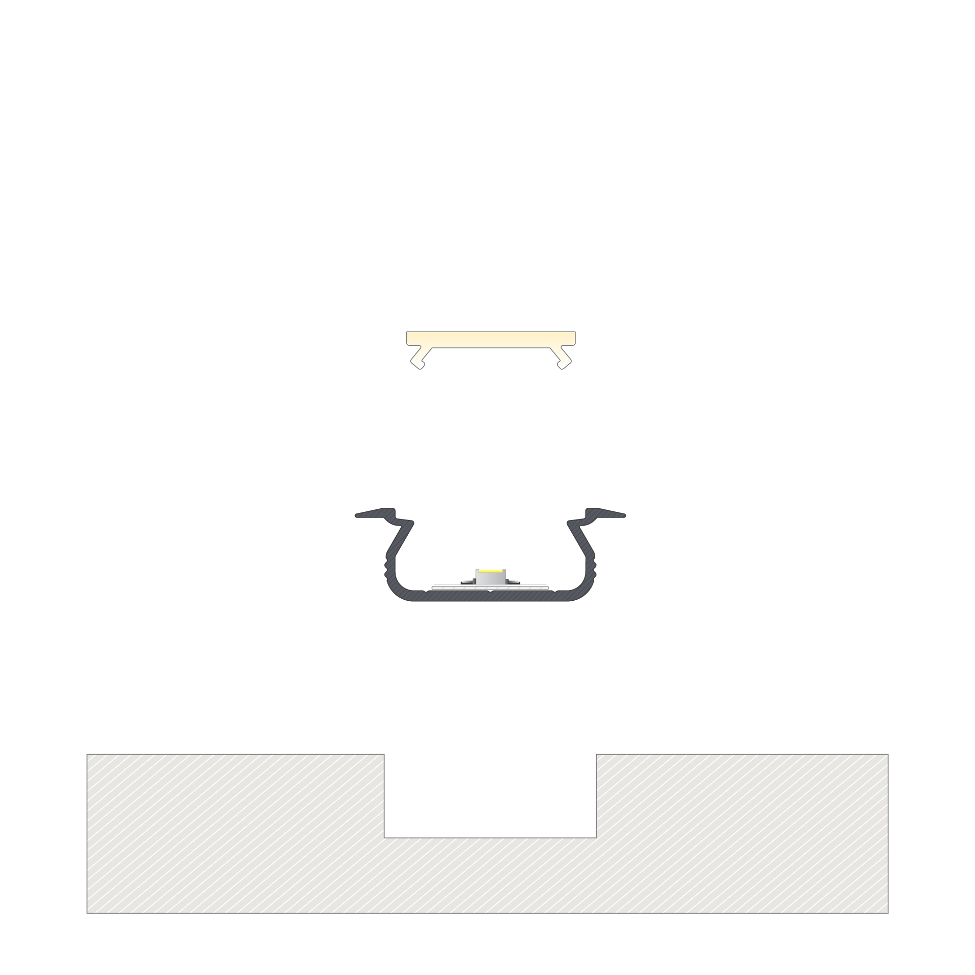 Profil LED wpuszczany do zastosowań w kuchniach i strefach ekspozycyjnych. Stosowany do oświetlania szaf, blatów i innych powierzchni roboczych.
