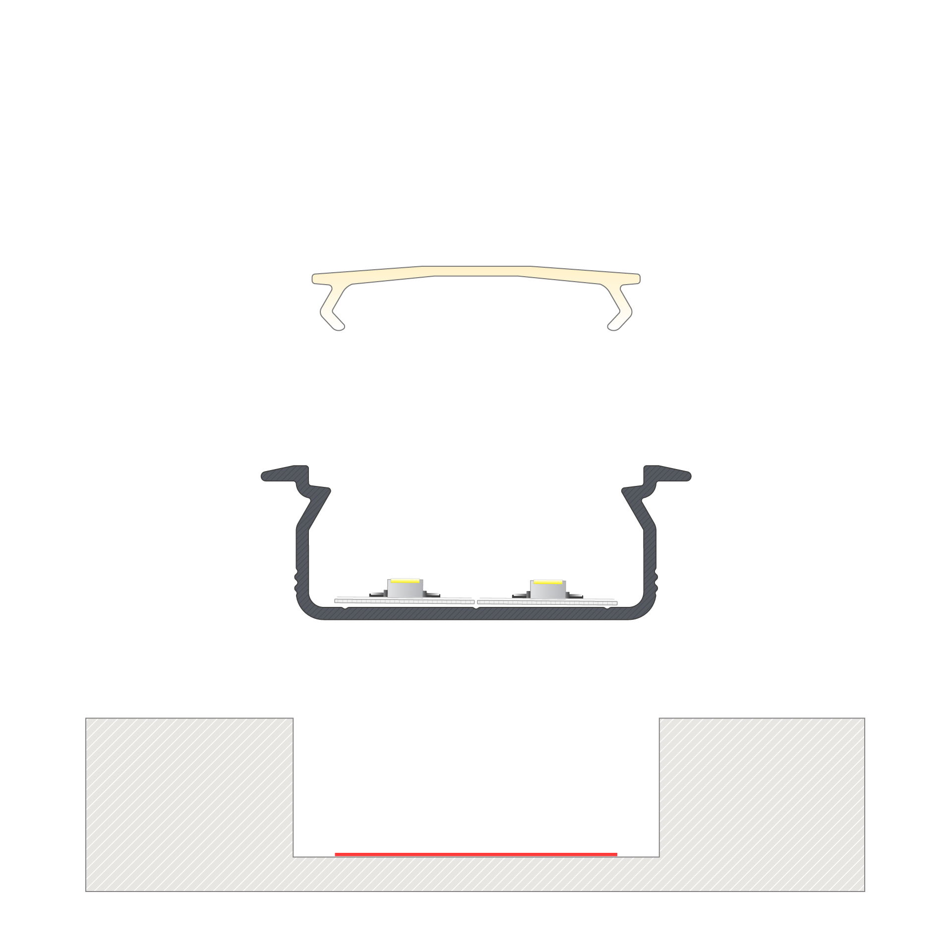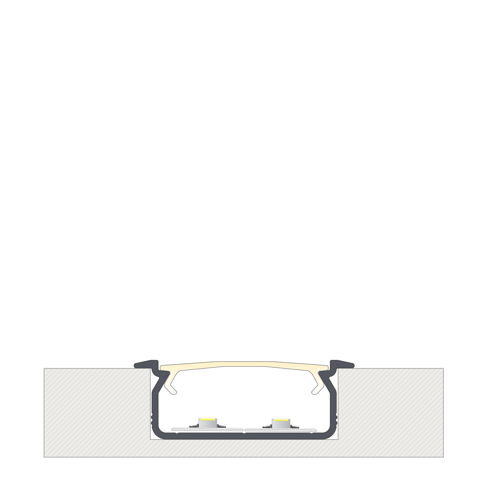 Szeroki profil LED do montażu w wyfrezowanych otworach.
