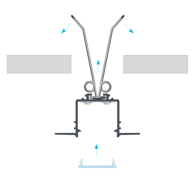 Instrukcja montażu profilu SUBLI z kloszem DOUBLE za pomocą sprężyn montażowych.