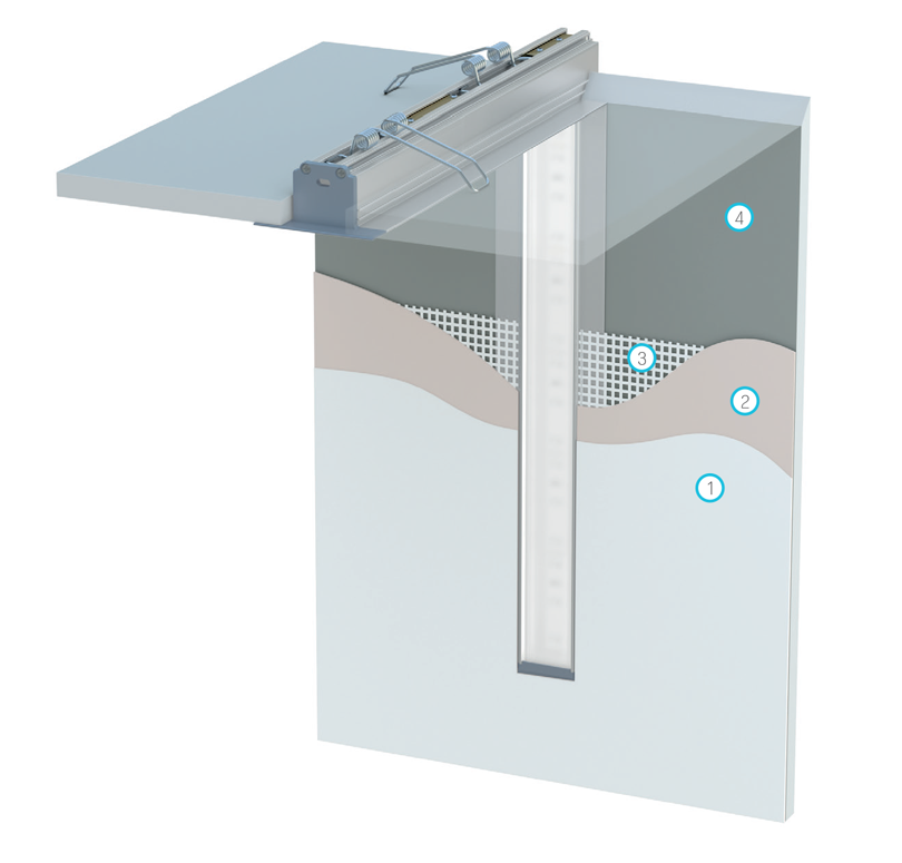 Efekt końcowy montażu profilu SUBLI z kloszem DOUBLE za pomocą sprężyn montażowych. Widok po zagipsowaniu.