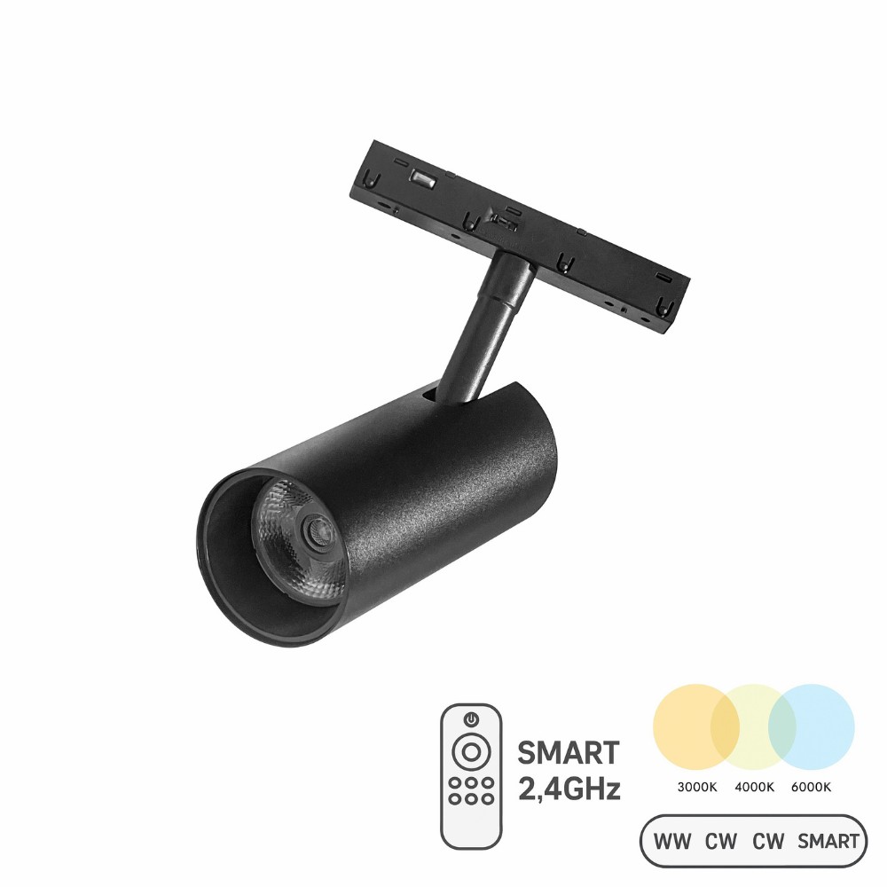 W trybie SMART, lampa zyskuje możliwość zdalnego sterowania za pomocą dedykowanego pilota, który umożliwia obsługę całego oświetlenia zamontowanego na jednej szynie magnetycznej. Pilot pozwala na sterowanie nawet 4 niezależnymi strefami, co daje ogromne możliwości w zakresie tworzenia zaawansowanych i spersonalizowanych scen świetlnych (każda grupa to jeden szynoprzewód). Użytkownik może dowolnie zmieniać barwę światła w każdej ze stref (ciepła, neutralna, zimna), a także regulować natężenie oświetlenia bez potrzeby wstawania z fotela. Pilot oferuje łączność radiową 2.4GHz co oznacza, że jego zasięg sięga nawet do 30 metrów w przestrzeni otwartej.