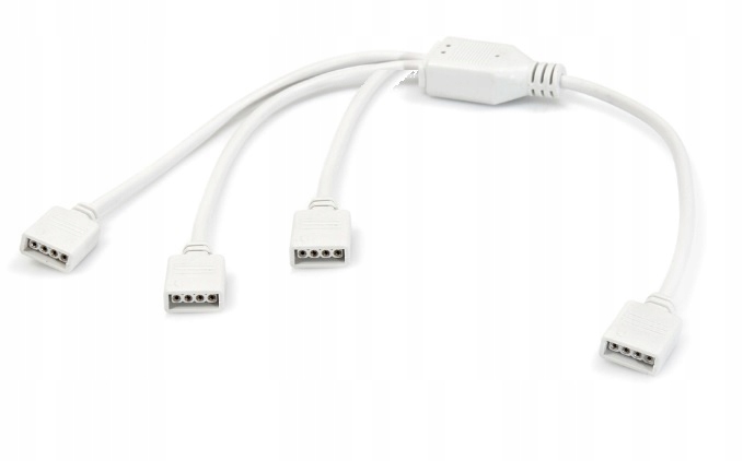Rozdzielacz do taśm LED RGB rozdzielający sygnał z jednego na trzy paski LED. Rozgałęźnik wyposażony w gniazda 4-piny typu drabinka umożliwiające szybkie i łatwe podłączenie wszystkich pasków LED. Niezbędne złącze do konstrukcji rozbudowanych układów RGB bez konieczności lutowania. Wystarczy jedynie z jednej strony rozdzielacza wpiąć sterownik, natomiast z drugiej bezpieczenie podłączyć dwa niezależne paski LED RGB.