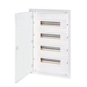 Rozdzielnica modułowa wykonana z tworzywa sztucznego, przeznaczona do montażu podtynkowego. Posiada 2 rzędy po 18 modułów.