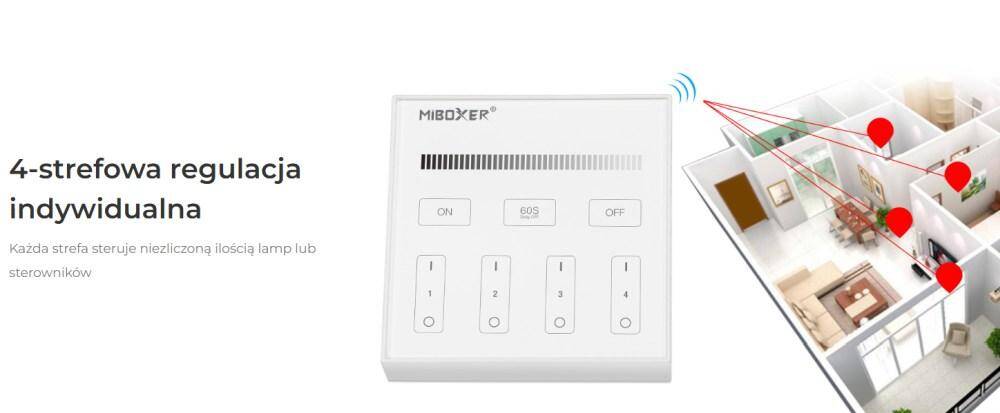 Panel Mi-Light B1B to uniwersalne urządzenie sterujące, które współpracuje z kompatybilnymi sterownikami i instalacjami LED systemu Mi-Light/MiBoxer: