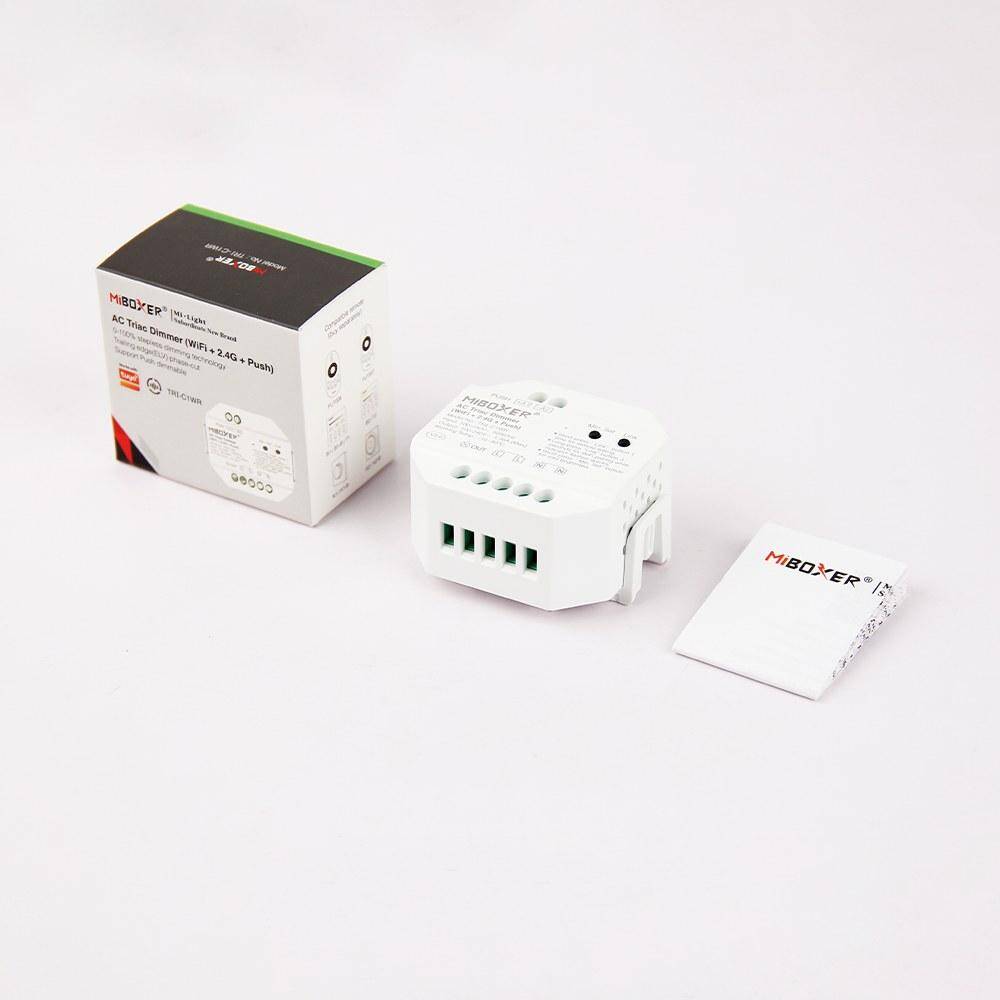 Ściemniacz LED 230V Wi-Fi Mi-Light TRI-C1WR to nowoczesny, dopuszkowy kontroler przeznaczony do sterowania ściemnialnym oświetleniem LED 230V oraz innymi kompatybilnymi źródłami światła pracującymi w technologii TRIAC. Model TRI-C1WR został zaprojektowany z myślą o wygodnym montażu w standardowej puszce instalacyjnej FI60 mm, dzięki czemu może zostać dyskretnie ukryty w ścianie i współpracować z istniejącą instalacją elektryczną. Urządzenie stanowi element systemu Mi-Light / MiBoxer i pozwala na komfortowe sterowanie światłem przy użyciu pilota, kontrolera naściennego, przycisku dzwonkowego oraz aplikacji mobilnej.
