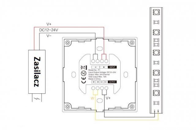 Ściemniacz LED dotykowy MiLight P1 przeznaczony do jednokolorowych taśm LED 12V/24V. Kontroler dotykowy Mi-Light P1 to kompletne urządzenie, które podłączamy między zasilaczem, a sterowaną taśmą LED.