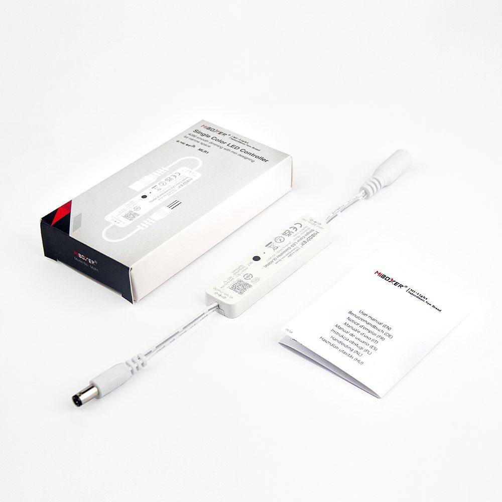 Ściemniacz LED Mi-Light MLR1 to kompaktowy kontroler przeznaczony do sterowania jednokolorowym oświetleniem LED zasilanym napięciem stałym 12–24V DC. Model MLR1 należy do miniaturowej serii sterowników Mi-Light / MiBoxer, dlatego został zaprojektowany z myślą o instalacjach, w których liczy się niewielki rozmiar urządzenia, wygodna obsługa i prosty montaż. Urządzenie przeznaczone jest do pracy z oświetleniem Mono, czyli jednokolorowymi taśmami LED i źródłami światła wymagającymi płynnej regulacji jasności.