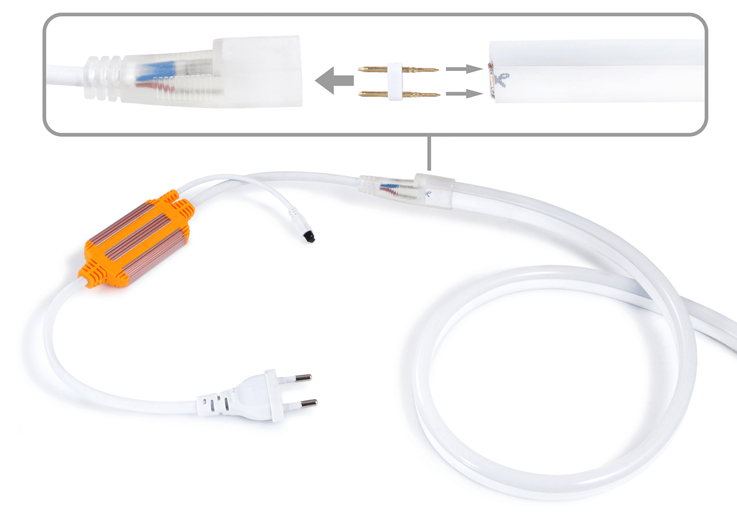 NEONY LED 230V nie posiadają tak jak taśmy 12V dwustronnej taśmy 3M do mocowania w zestawie. Mocujemy je za pomocą specjalnych uchwytów montażowych stworzonych pod wymiar NEONU.