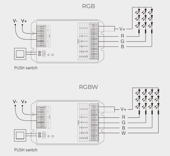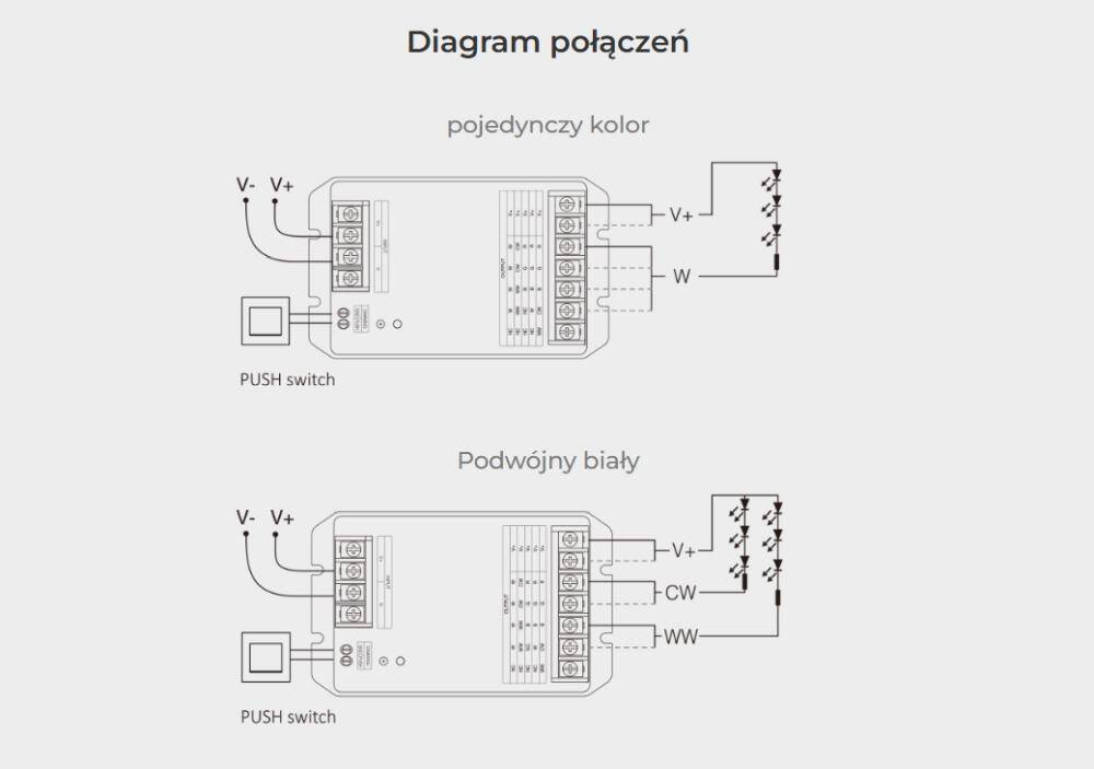 Dzięki uniwersalnej konstrukcji sterownik może być stosowany w wielu różnych projektach: od oświetlenia jednokolorowego i CCT, przez klasyczne instalacje RGB, aż po bardziej rozbudowane systemy RGBW i RGB+CCT. To bardzo praktyczne rozwiązanie dla osób, które chcą zachować dużą elastyczność podczas projektowania lub rozbudowy instalacji oświetleniowej.
