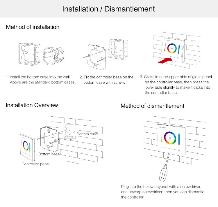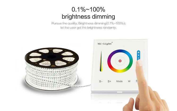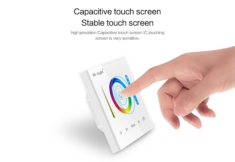 Kontroler dotykowy MiLight P3 wyposażony został w czuły ekran dotykowy wykonany szkła hartowanego i może pełnić funkcję standardowego włącznika światła z dodatkową możliwością jego płynnego ściemniania i zmiany barwy RGB/RGBW. Sterownik MiLight P3 został wyposażony także w aż 12 automatycznych efektów i trybów.