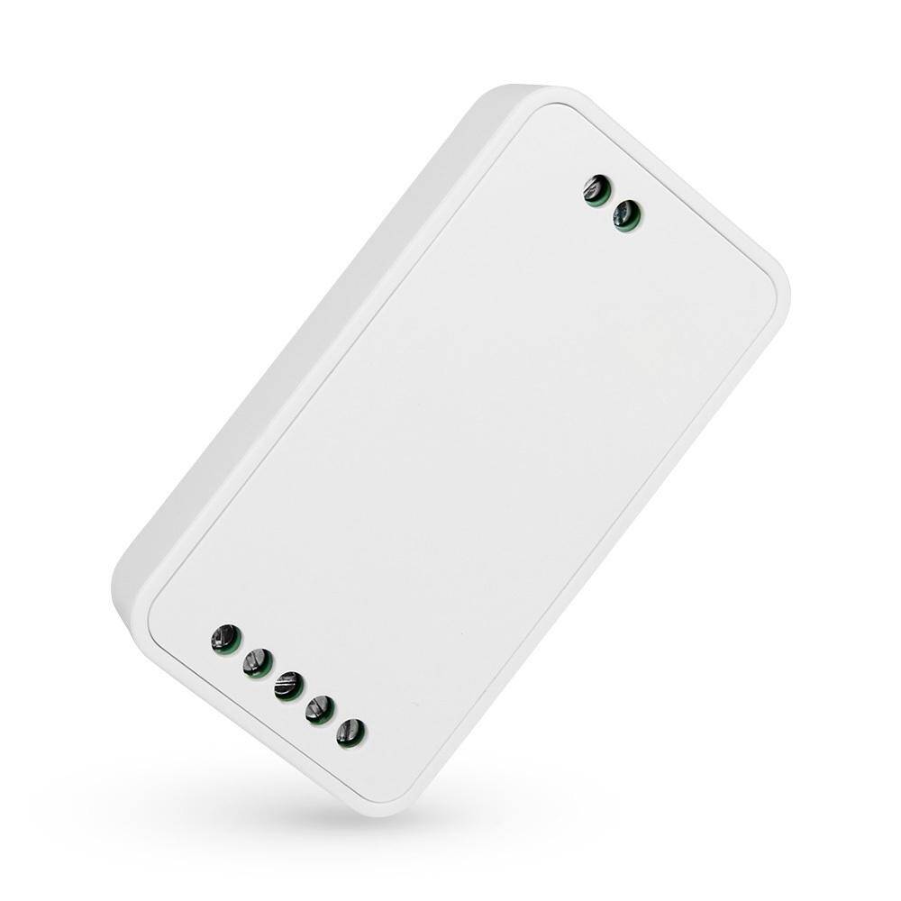 Mi-Light FUT027 służy do sterowania taśmami i źródłami światła LED RGBW. Odbiornik montowany jest pomiędzy zasilaczem a taśmą LED, a dołączony pilot umożliwia wygodne włączanie i wyłączanie światła, zmianę kolorów, regulację jasności, obsługę barwy białej oraz uruchamianie efektów dynamicznych. Dzięki temu użytkownik może szybko dopasować charakter oświetlenia do wnętrza, nastroju lub konkretnego zastosowania.