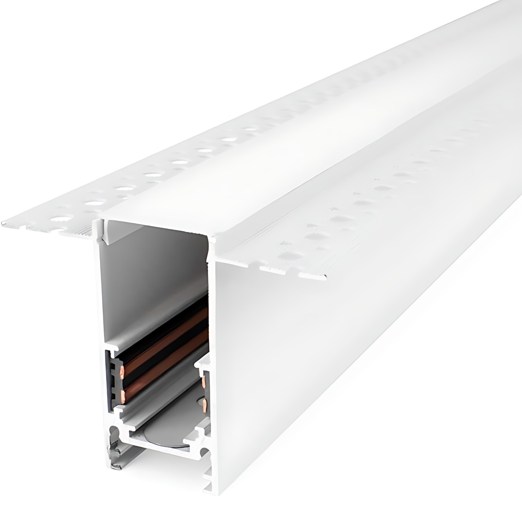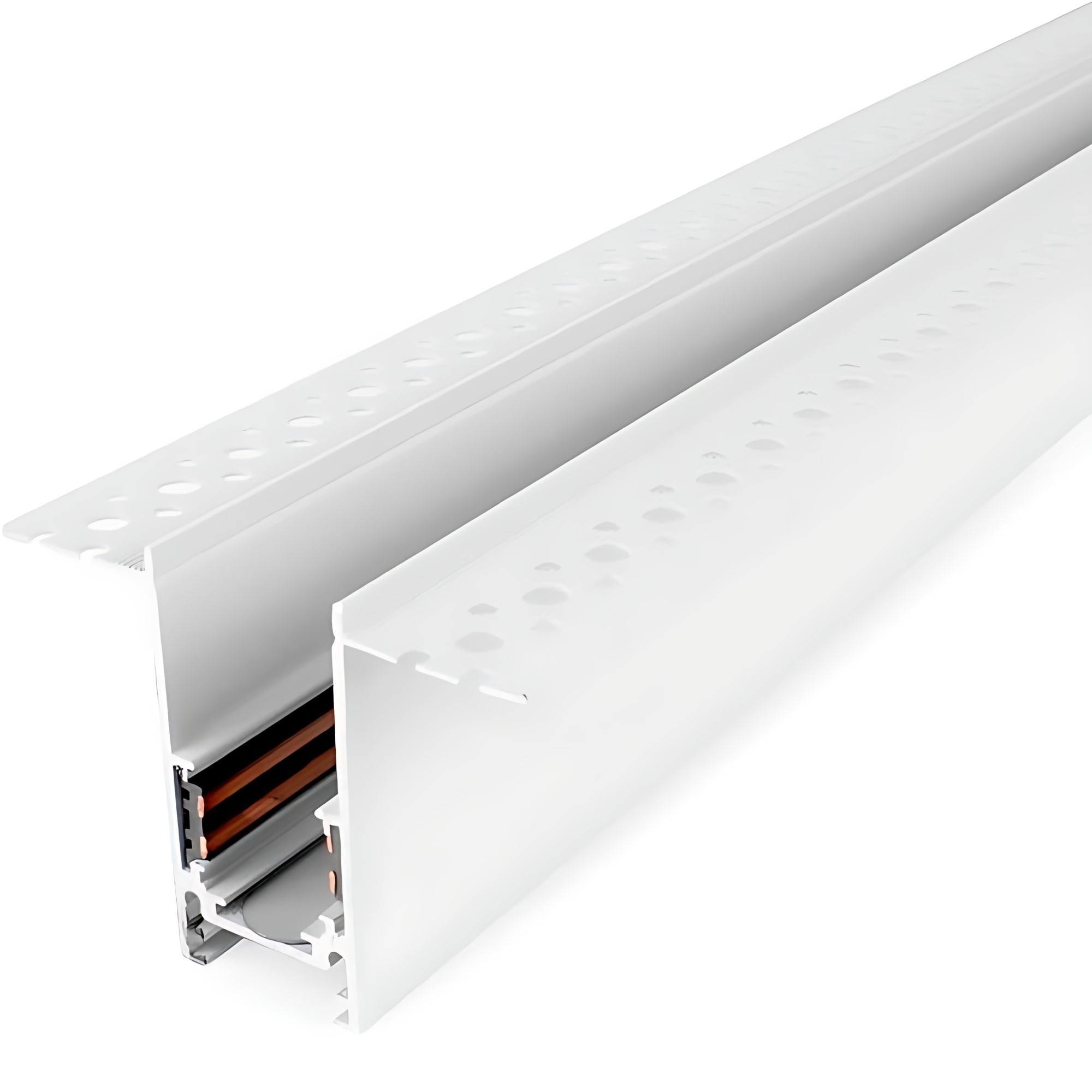 Szyna magnetyczna podtynkowa GK biała o długości 2 metrów. Nowoczesna alternatywa dla standardowych szynoprzewodów, która umożliwia montaż oświetlenia magnetycznego.