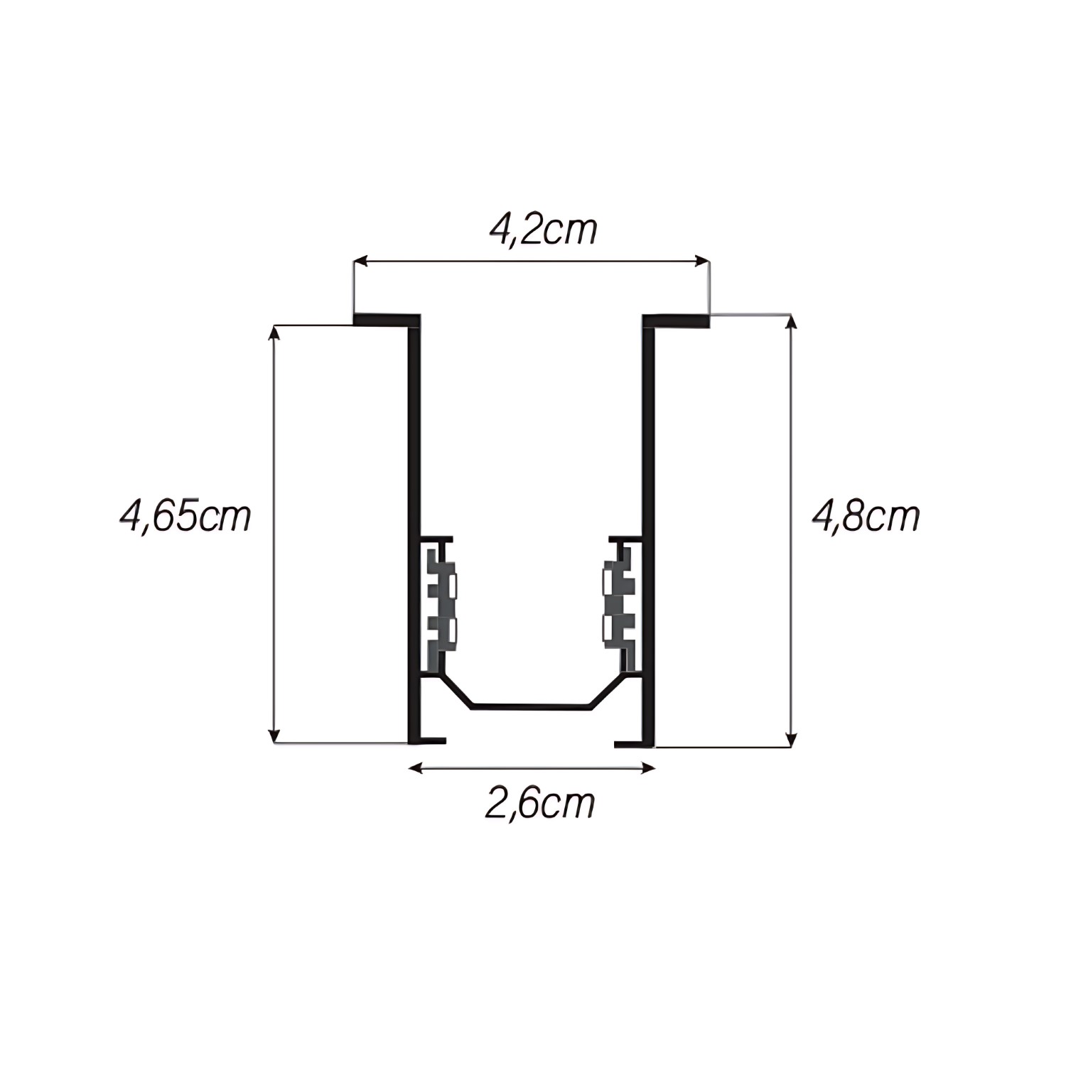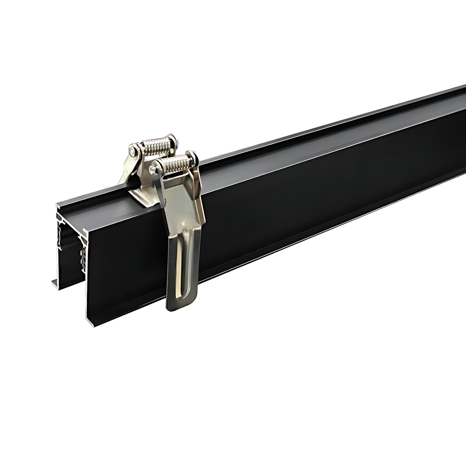 Szyna magnetyczna wpuszczana czarna o długości 1 metra z kloszem i zaślepkami w komplecie. Przeznaczona do montażu w sufitach podwieszanych za pomocą dedykowanych klipsów (uchwytów mocujących).