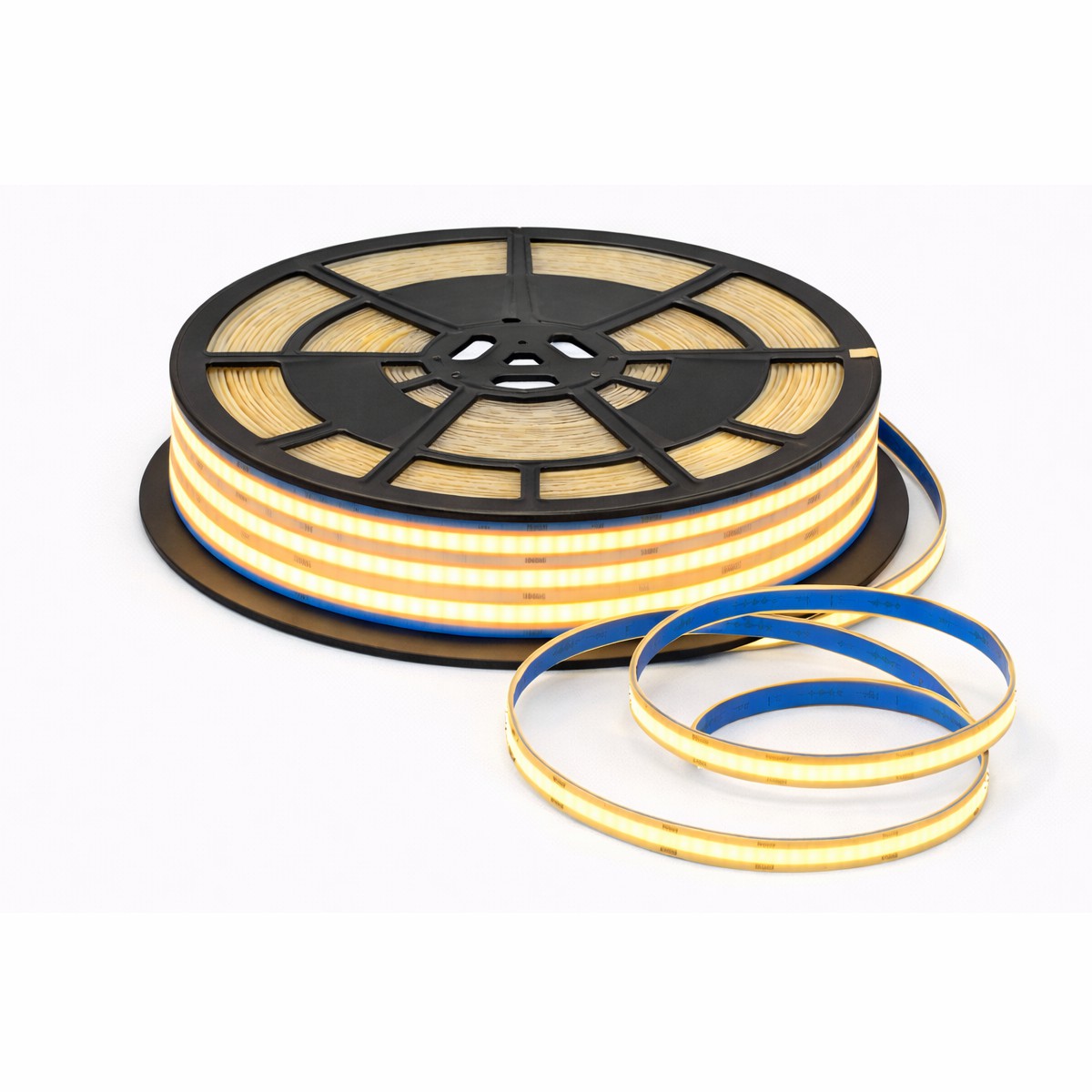 Taśma LED COB 12V 320 LED/m to nowoczesny pasek świetlny zapewniający idealnie jednolitą linię światła bez widocznych punktów LED. Zastosowana technologia COB eliminuje efekt pojedynczych diod, dzięki czemu nie ma potrzeby stosowania profilu z mlecznym kloszem. Taśma emituje ciepłą barwę światła 3000K, idealną do codziennego użytkowania. Jest elastyczna i doskonale sprawdzi się zarówno w domowych, jak i komercyjnych instalacjach oświetleniowych, oferując estetyczne i nowoczesne wykończenie wnętrza. Taśma sprzedawana jest na metry bieżące, a zamówiona ilość zostanie docięta z, fabrycznej rolki o długości 50 m. Do podłączenia wymagany jest zasilacz (do dokupienia osobno).Maksymalna długość jednego odcinka wynosi 5 m przy zasilaniu z jednej strony lub 10 m przy zasilaniu z dwóch stron.